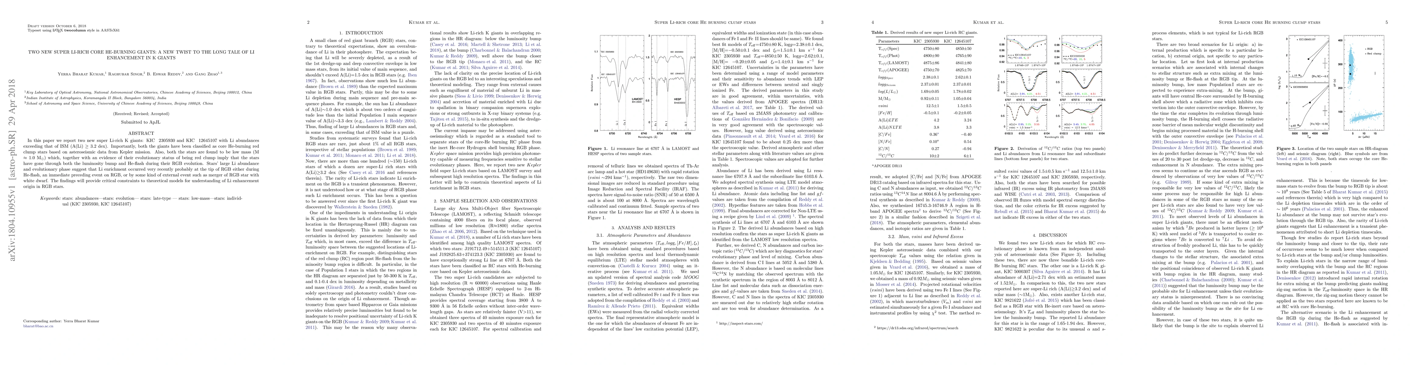 This paper identifies two new super Li-rich K giants, KIC 2305930 and KIC 12645107, with lithium abundances exceeding that of the interstellar medium. These stars are classified as core He-burning red clump giants, suggesting recent lithium enrichment likely occurred during the He-flash or an external event like a merger.