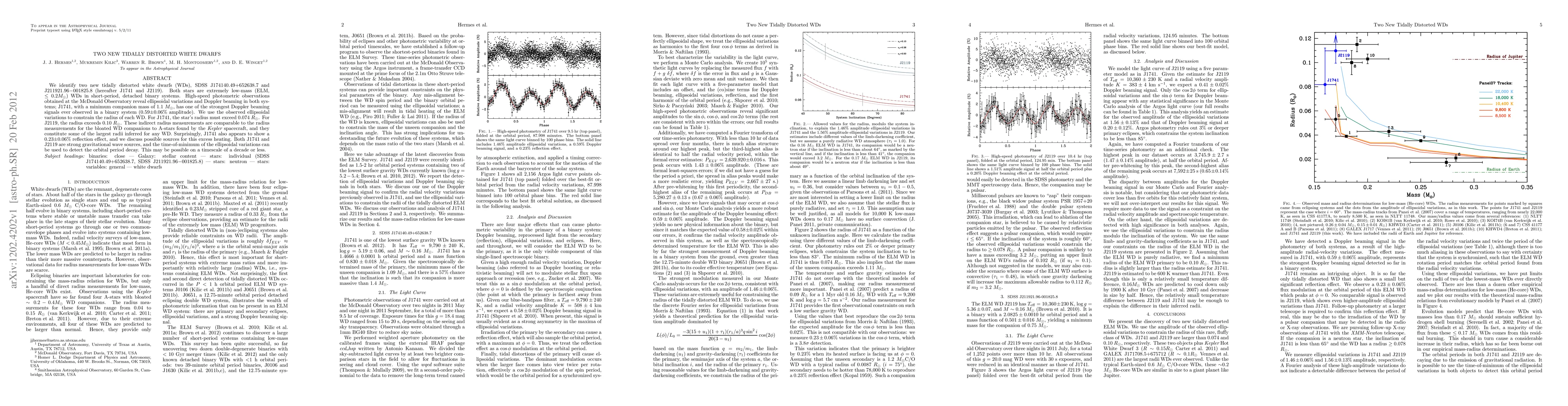 This paper identifies two new tidally distorted white dwarfs, J1741 and J2119, in short-period binary systems, revealing significant ellipsoidal variations and Doppler beaming. The study finds that both white dwarfs have larger radii than typical, suggesting tidal distortion and potential excess heating in J1741.
