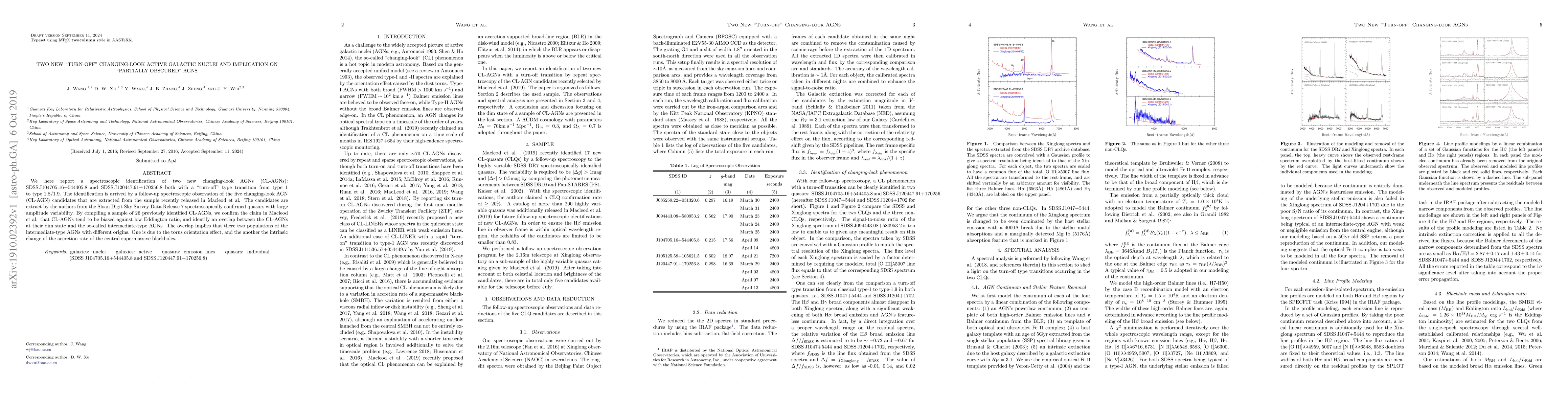 This paper identifies two new "turn-off" changing-look active galactic nuclei (CL-AGNs) through spectroscopic observations, confirming a trend that CL-AGNs are less common among low Eddington ratio objects. It suggests that intermediate-type AGNs may arise from either torus orientation or changes in accretion rates.