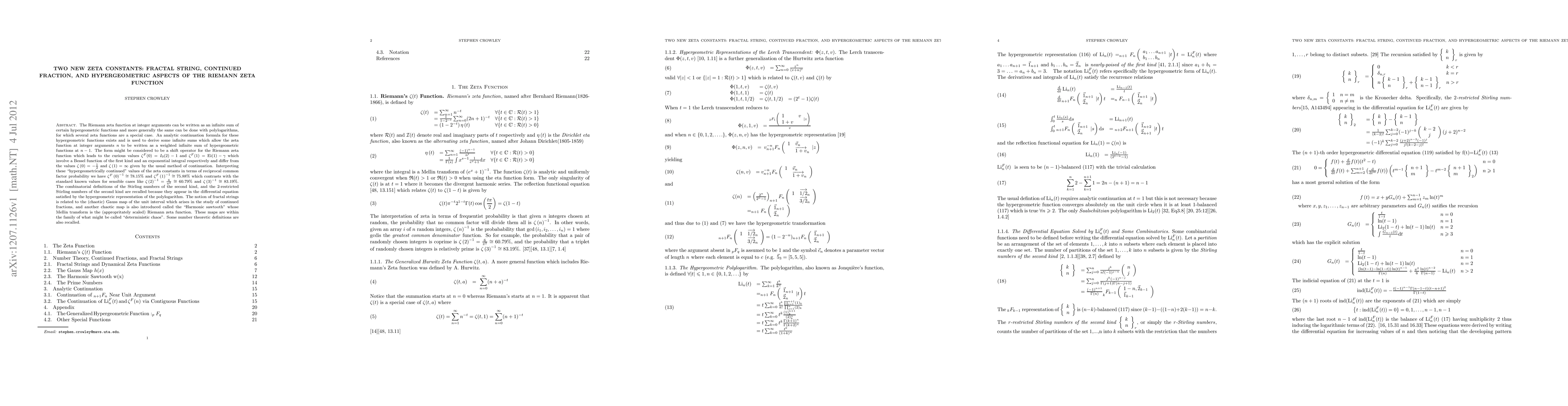 This paper introduces two new zeta constants, {\zeta}F(0) and {\zeta}F(1), derived from a hypergeometric continuation of the Riemann zeta function, contrasting with traditional values. It explores fractal strings, continued fractions, and chaotic maps like the Gauss map and Harmonic sawtooth, linking them to number theory and combinatorics.