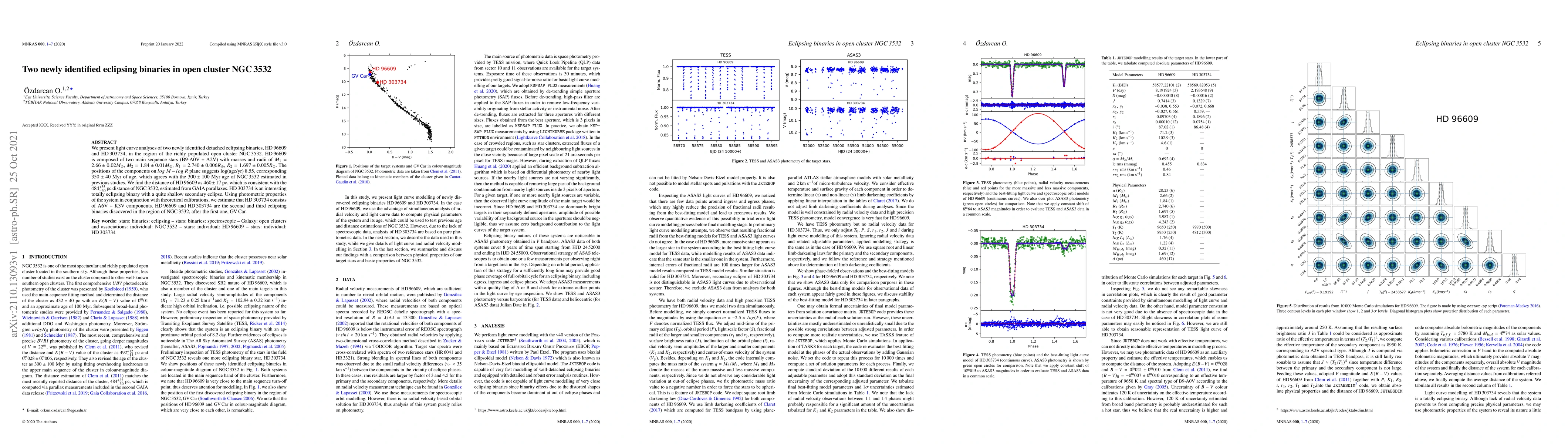 This paper presents light curve analyses of two new eclipsing binaries, HD 96609 and HD 303734, in the open cluster NGC 3532, revealing their stellar properties and confirming the cluster's age. The findings support the cluster's estimated distance and age.