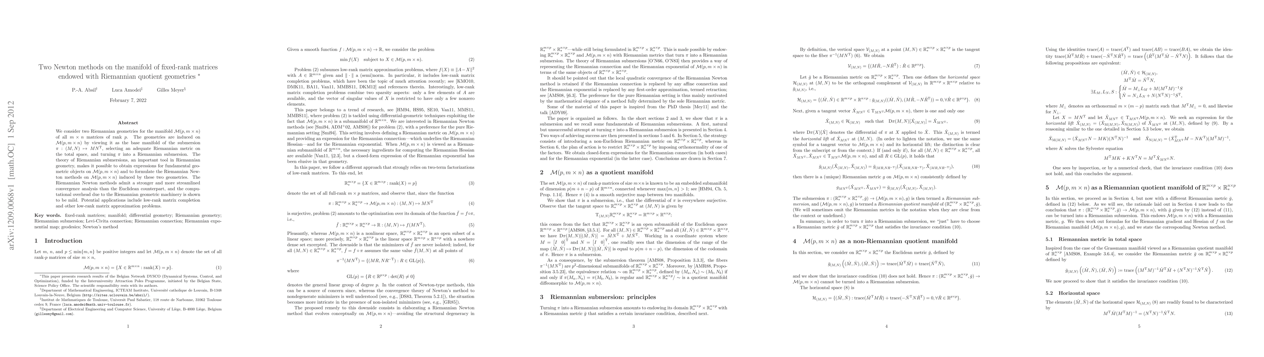 This paper explores two Riemannian Newton methods for the manifold of fixed-rank matrices, leveraging Riemannian submersion geometries. These methods offer stronger convergence properties and manageable computational overhead, with potential applications in low-rank matrix completion and approximation.