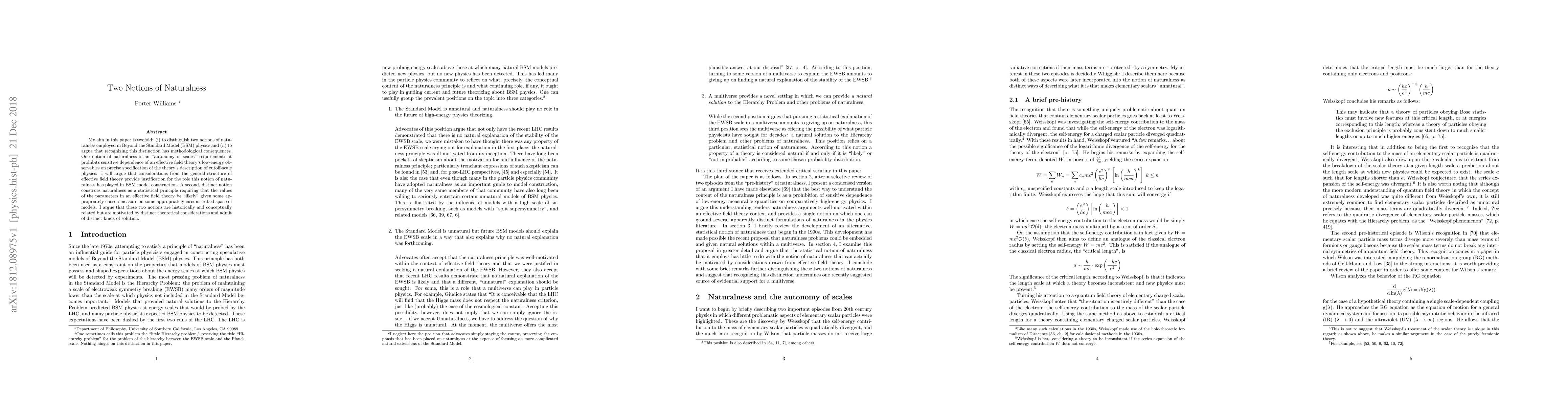 My aim in this paper is twofold: (i) to distinguish two notions of naturalness employed in BSM physics and (ii) to argue that recognizing this distinction has methodological consequences. One notion of naturalness is an "autonomy of scales" requirement: it prohibits sensitive dependence of an effective field theory's low-energy observables on precise specification of the theory's description of cutoff-scale physics. I will argue that considerations from the general structure of effective field theory provide justification for the role this notion of naturalness has played in BSM model construction. A second, distinct notion construes naturalness as a statistical principle requiring that the values of the parameters in an effective field theory be "likely" given some appropriately chosen measure on some appropriately circumscribed space of models. I argue that these two notions are historically and conceptually related but are motivated by distinct theoretical considerations and admit of distinct kinds of solution.
