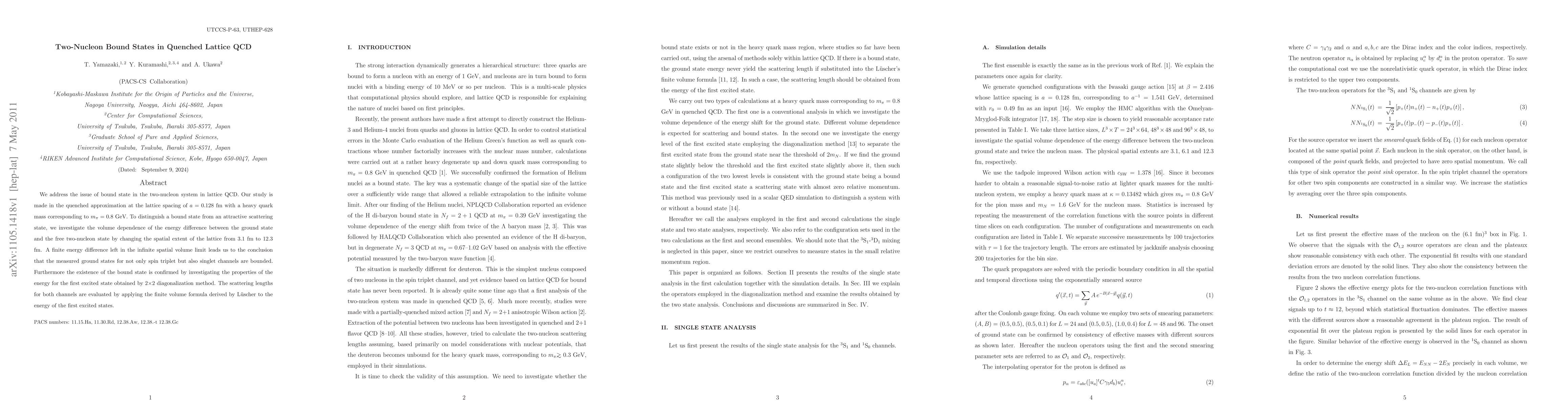 We address the issue of bound state in the two-nucleon system in lattice QCD. Our study is made in the quenched approximation at the lattice spacing of a = 0.128 fm with a heavy quark mass corresponding to m_pi = 0.8 GeV. To distinguish a bound state from an attractive scattering state, we investigate the volume dependence of the energy difference between the ground state and the free two-nucleon state by changing the spatial extent of the lattice from 3.1 fm to 12.3 fm. A finite energy difference left in the infinite spatial volume limit leads us to the conclusion that the measured ground states for not only spin triplet but also singlet channels are bounded. Furthermore the existence of the bound state is confirmed by investigating the properties of the energy for the first excited state obtained by 2x2 diagonalization method. The scattering lengths for both channels are evaluated by applying the finite volume formula derived by Luscher to the energy of the first excited states.