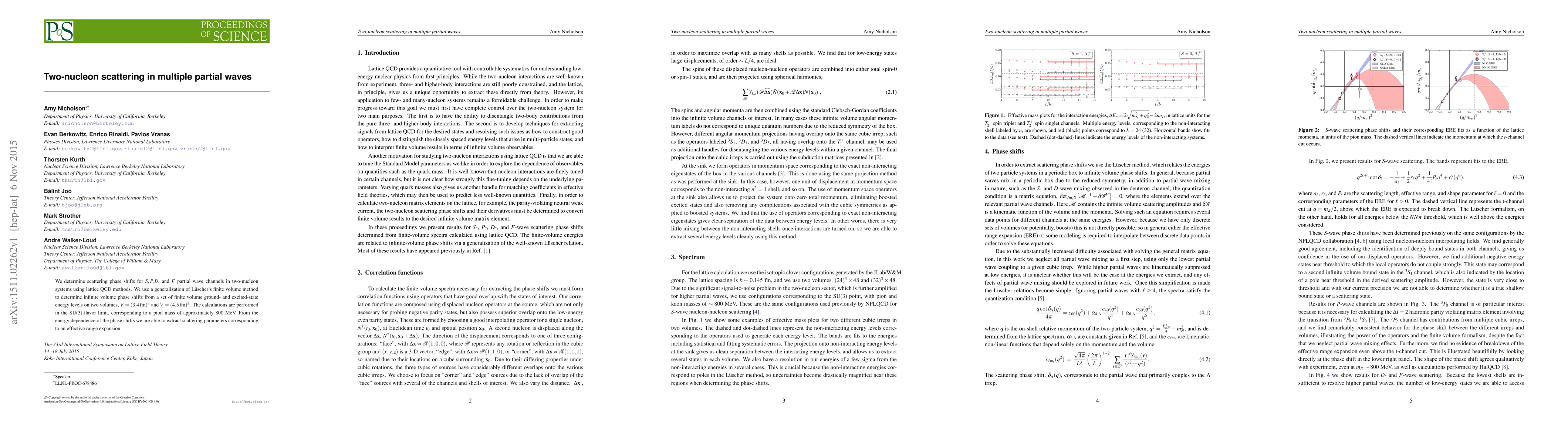 This paper uses lattice QCD methods to determine scattering phase shifts for S, P, D, and F partial waves in two-nucleon systems, employing Luscher's finite volume method to extract infinite volume phase shifts from finite volume calculations. The study provides scattering parameters from an effective range expansion at a pion mass of around 800 MeV.