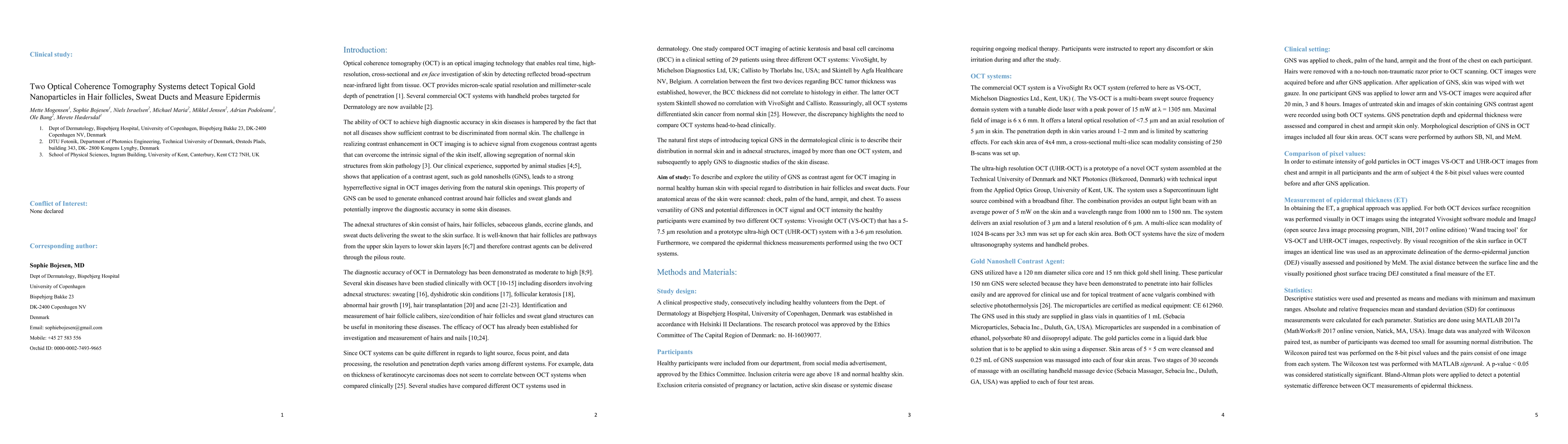Researchers used Optical Coherence Tomography to detect gold nanoparticles in skin areas, finding that they enhanced contrast and reduced epidermal thickness with higher resolution imaging.