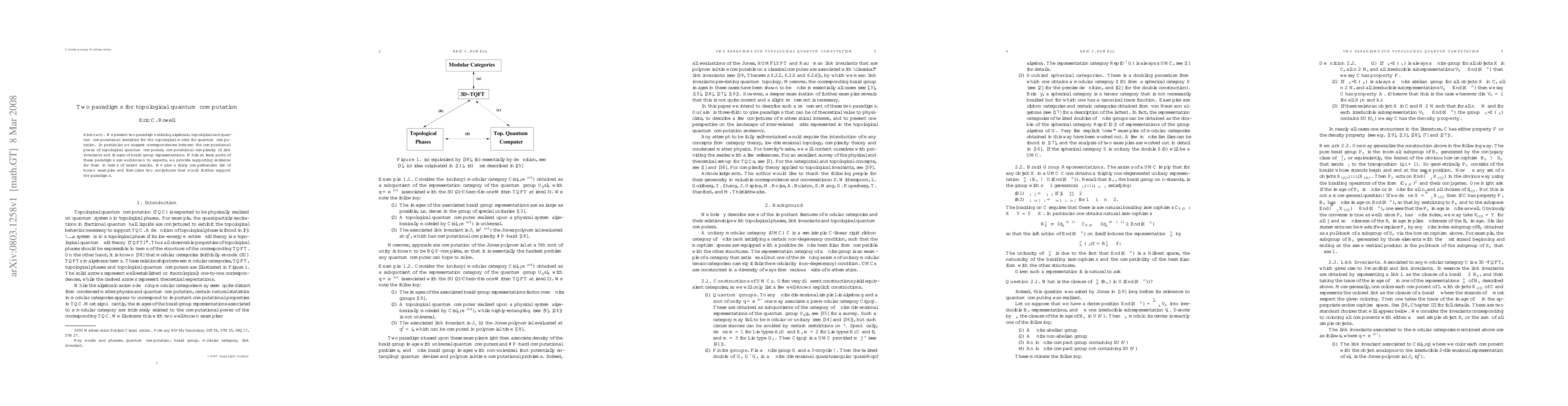 We present two paradigms relating algebraic, topological and quantum computational statistics for the topological model for quantum computation. In particular we suggest correspondences between the computational power of topological quantum computers, computational complexity of link invariants and images of braid group representations. While at least parts of these paradigms are well-known to experts, we provide supporting evidence for them in terms of recent results. We give a fairly comprehensive list of known examples and formulate two conjectures that would further support the paradigms.