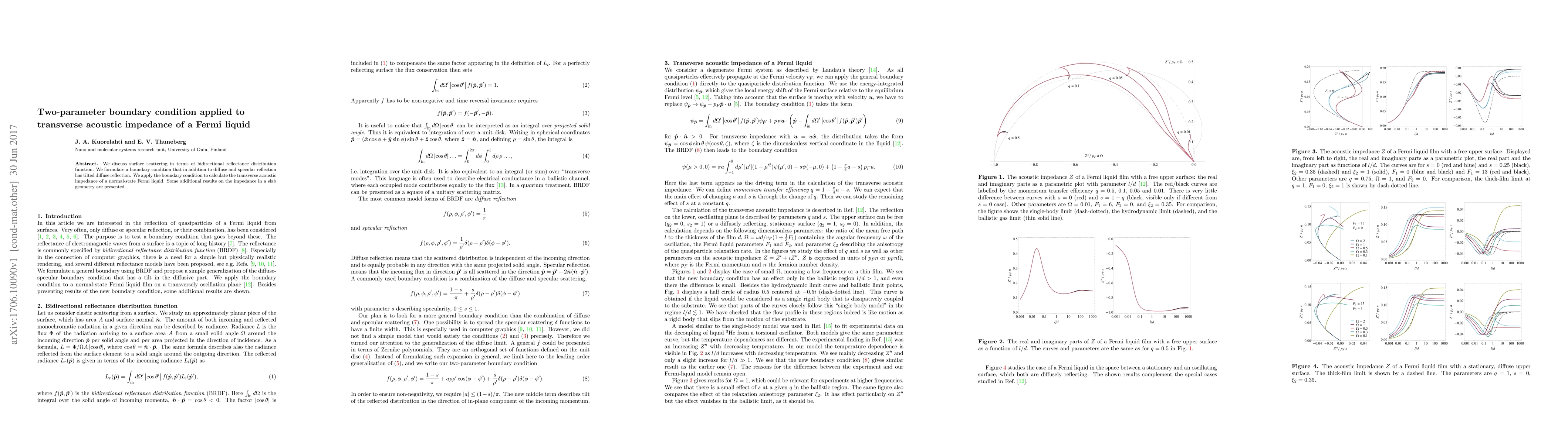 This paper formulates a two-parameter boundary condition for surface scattering, including tilted diffuse reflection, and applies it to calculate the transverse acoustic impedance of a normal-state Fermi liquid, with additional results on impedance in a slab geometry.