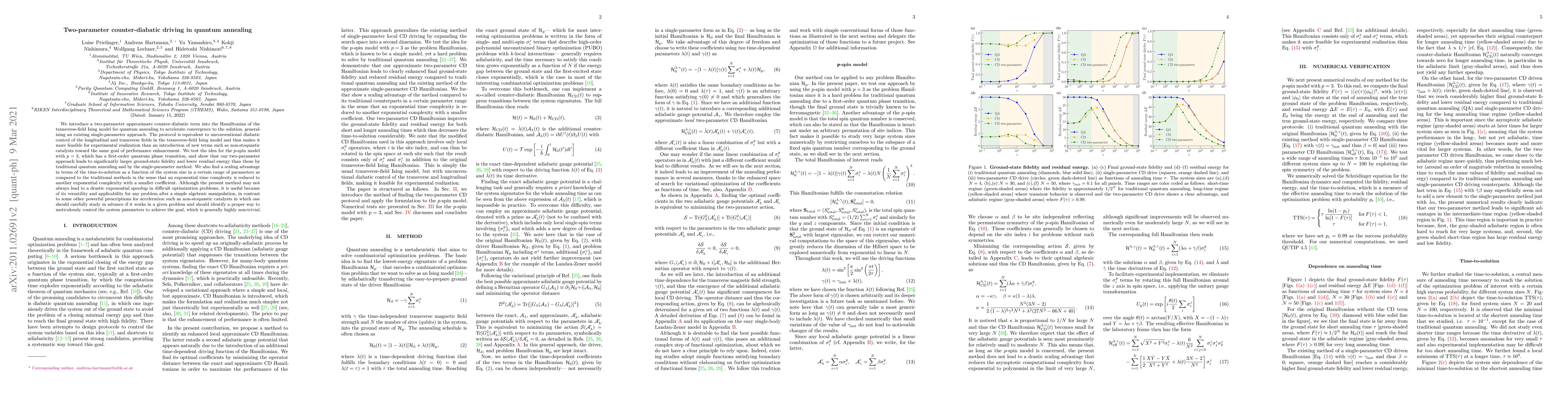 A new method for accelerating quantum annealing is proposed, introducing a two-parameter counter-diabatic term that improves convergence to the solution and reduces residual energy in certain models.