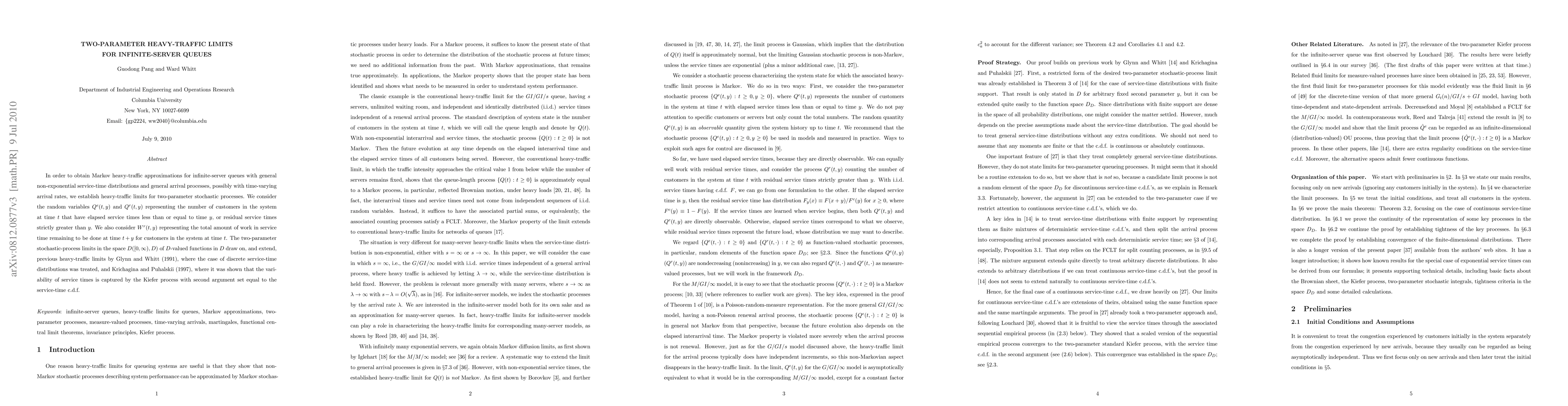 The research employs a two-parameter heavy-traffic approach to establish limits for infinite-server queues with non-exponential service-time distributions and general arrival processes, including time-varying rates.