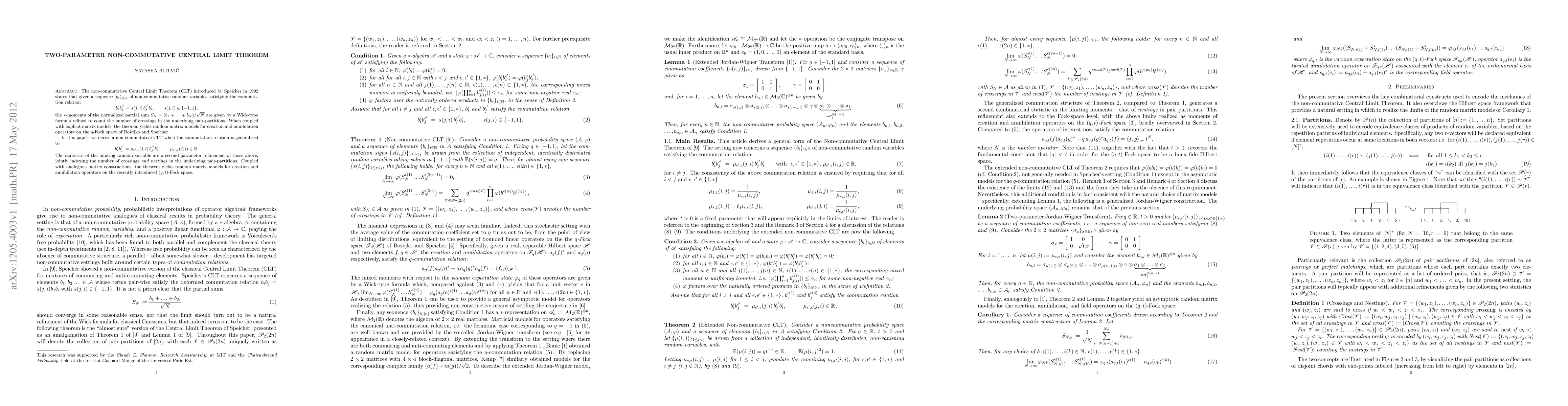 The non-commutative Central Limit Theorem (CLT) introduced by Speicher in 1992 states that given almost any sequence of non-commutative random variables that commute or anti-commute pair-wise, the *-moments of the normalized partial sum S_N=(b_1+...+ b_N)/\sqrt{N} are given by a Wick-type formula refined to count the number of crossings in the underlying pair-partitions. When coupled with explicit matrix models, the theorem yields random matrix models for creation and annihilation operators on the q-Fock space of Bozejko and Speicher. In this paper, we derive a non-commutative CLT when the pair-wise commutation coefficients are real numbers (as opposed to signs). The statistics of the limiting random variable are a second-parameter refinement of those above, jointly indexing the number of crossings and nestings in the underlying pair-partitions. Coupled with analogous matrix constructions, the theorem yields random matrix models for creation and annihilation operators on the recently introduced (q,t)-Fock space.