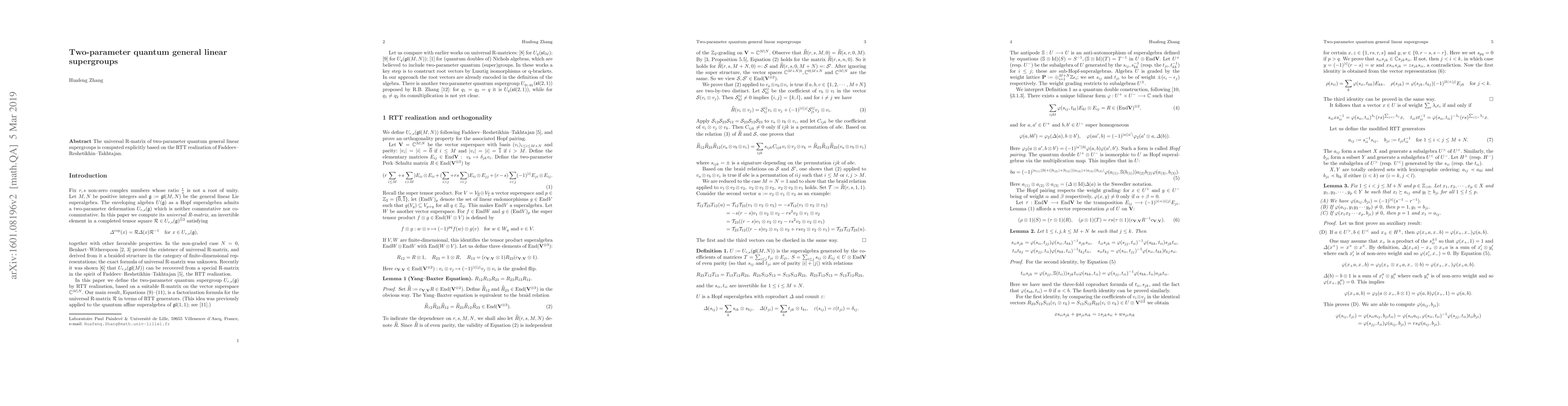Summary: This paper computes the universal R-matrix for two-parameter quantum general linear supergroups using the RTT realization of Faddeev-Reshetikhin-Takhtajan, providing a detailed mathematical framework for these structures.