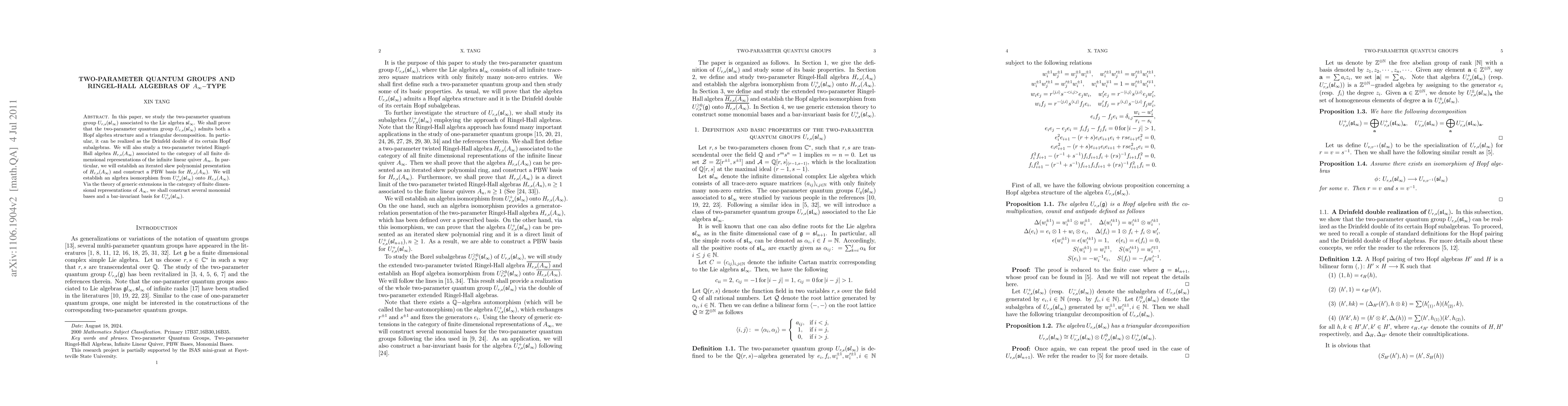 The paper introduces a detailed analysis of two-parameter quantum groups and Ringel-Hall algebras for $A_{\infty}$-type, providing a comprehensive framework for their structure and properties.