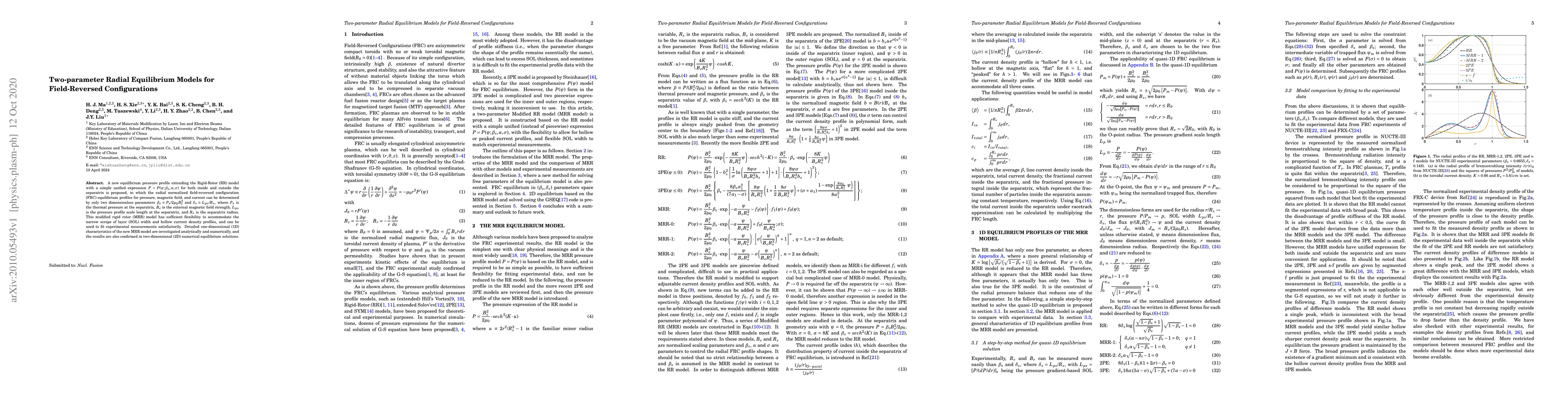 This paper proposes a new two-parameter radial equilibrium model for field-reversed configurations (FRCs) that extends the Rigid-Rotor model, allowing for unified pressure profiles inside and outside the separatrix. The model uses two dimensionless parameters to determine equilibrium profiles, providing flexibility to fit experimental data.