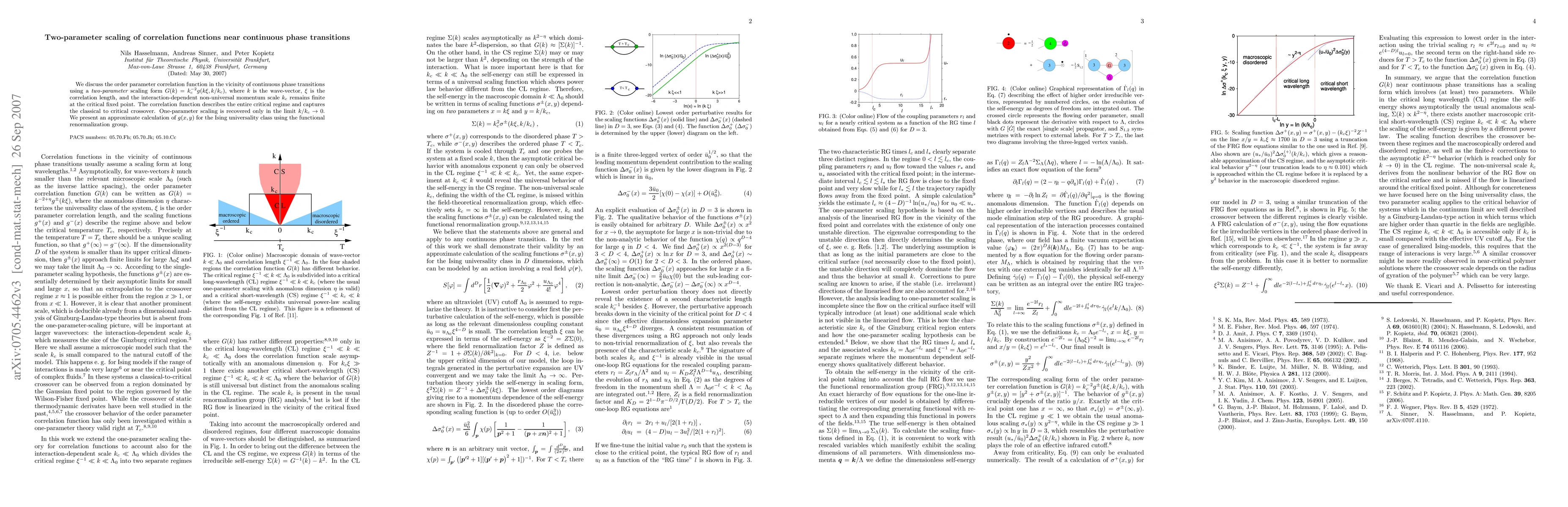 We discuss the order parameter correlation function in the vicinity of continuous phase transitions using a two-parameter scaling form G(k) = k_c^{-2} g(k\xi,k/k_c), where k is the wave-vector, \xi is the correlation length, and the interaction-dependent non-universal momentum scale k_c remains finite at the critical fixed point. The correlation function describes the entire critical regime and captures the classical to critical crossover. One-parameter scaling is recovered only in the limit k/k_c->0. We present an approximate calculation of g(x,y) for the Ising universality class using the functional renormalization group.
