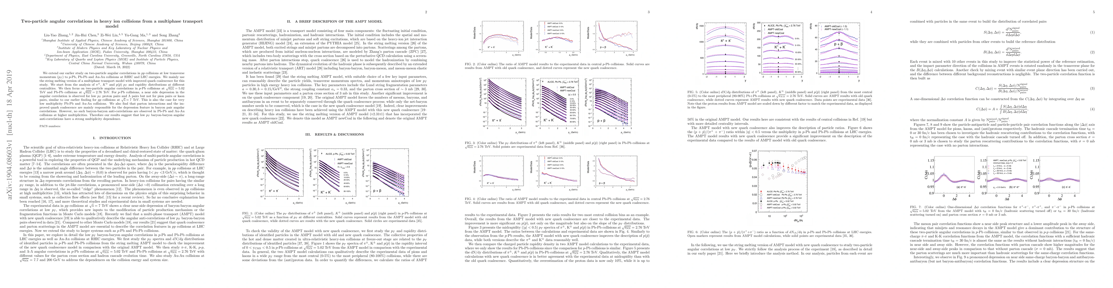 We extend our earlier study on two-particle angular correlations in $pp$ collisions at low transverse momentum ($p_T$) to $p$-Pb, Pb-Pb and Au-Au collisions at RHIC and LHC energies. We mainly use the string melting version of a multiphase transport model with improved quark coalescence for this study. We start from the analysis of $\pi^{\pm}$, $K^{\pm}$ and $p$($\bar{p}$) $p_T$ and rapidity distributions at different centralities. We then focus on two-particle angular correlations in $p$-Pb collisions at $\mathrm{\sqrt{s_{NN}} = 5.02}$ TeV and Pb-Pb collisions at $\mathrm{\sqrt{s_{NN}}= 2.76}$ TeV. For $p$-Pb collisions, a near side depression in the angular correlation is observed for low $p_T$ proton pairs and $\Lambda$ pairs but not for pion pairs or kaon pairs, similar to our earlier finding for $pp$ collisions at $\mathrm{\sqrt{s}= 7}$ TeV. This is also the case for very low multiplicity Pb-Pb and Au-Au collisions. We also find that parton interactions and the improved quark coalescence are mainly responsible for the depression feature in baryon pair angular correlations. However, no such baryon-baryon anti-correlations are observed in Pb-Pb and Au-Au collisions at higher multiplicities. Therefore our results suggest that low $p_T$ baryon-baryon angular anti-correlations have a strong multiplicity dependence.
