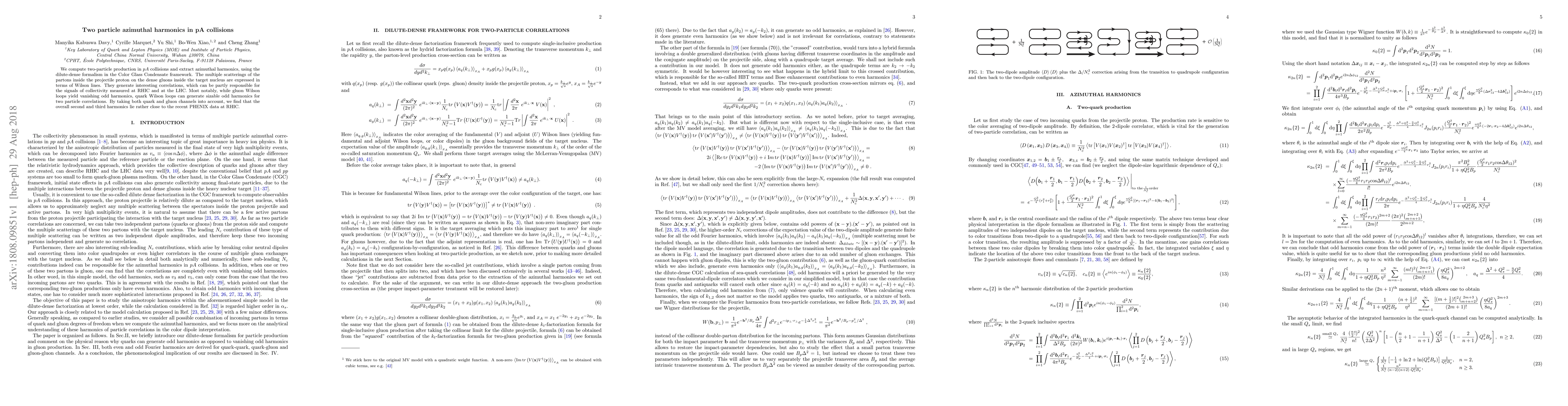 This paper computes two-particle azimuthal harmonics in p+A collisions using the Color Glass Condensate framework, finding that quark and gluon interactions generate distinct correlations. It shows that the combined effects of quark and gluon Wilson loops yield second and third harmonics consistent with recent PHENIX data.