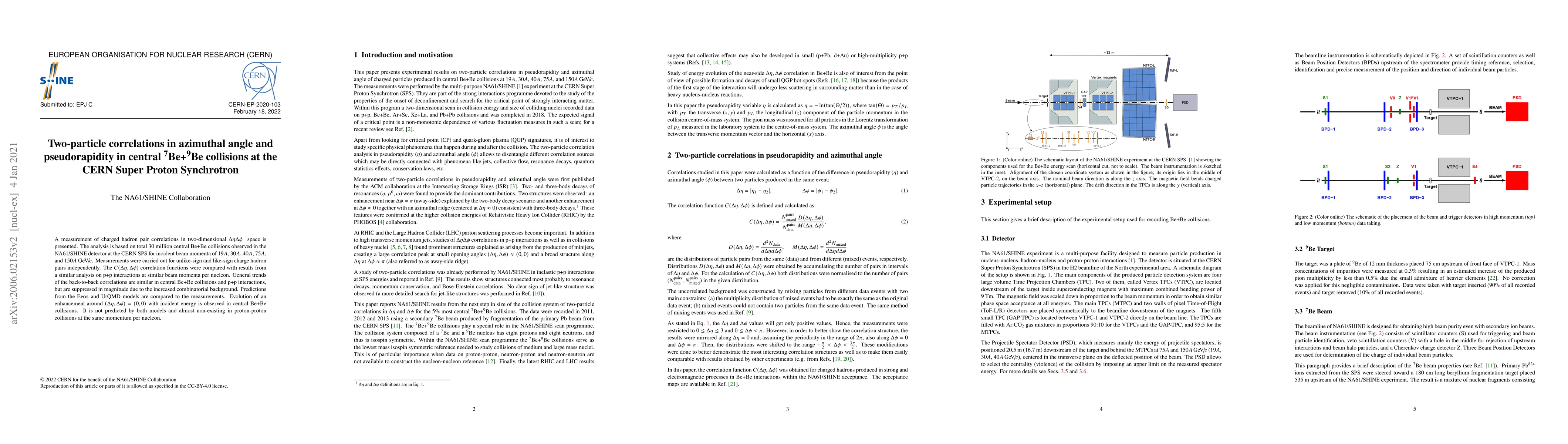 This paper investigates two-particle correlations in central $^7$Be+$^9$Be collisions at various beam energies, revealing similar back-to-back correlation trends compared to p+p interactions but with greater suppression due to combinatorial background. An enhancement around $(\Delta\eta,\Delta\phi) = (0,0)$ is observed with increasing energy, not predicted by current models.