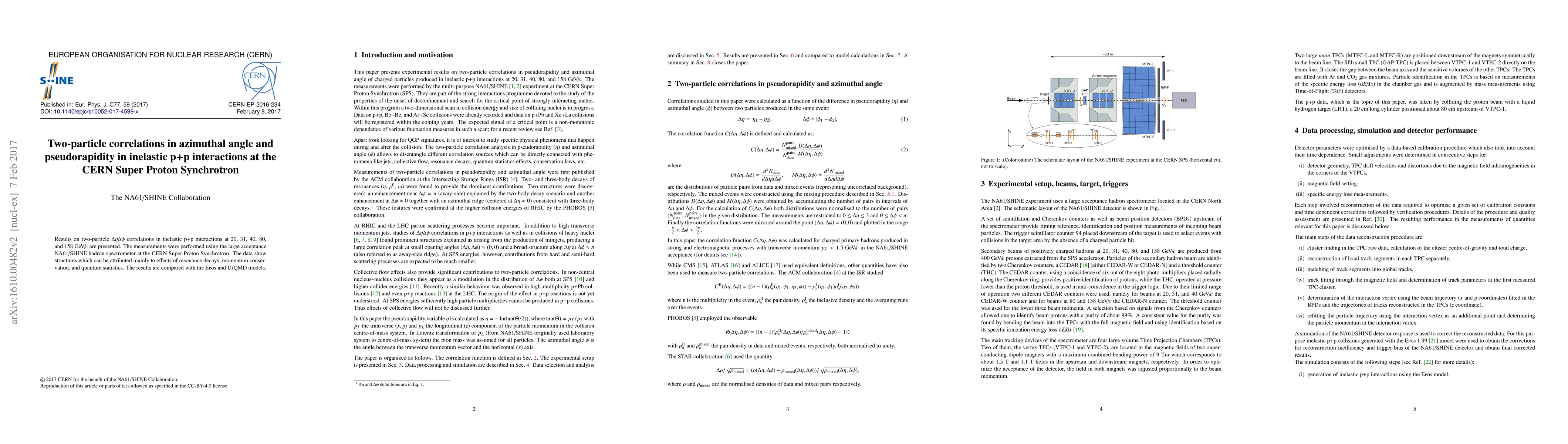 Results on two-particle $\Delta\eta\Delta\phi$ correlations in inelastic p+p interactions at 20, 31, 40, 80, and 158~GeV/c are presented. The measurements were performed using the large acceptance NA61/SHINE hadron spectrometer at the CERN Super Proton Synchrotron. The data show structures which can be attributed mainly to effects of resonance decays, momentum conservation, and quantum statistics. The results are compared with the EPOS and UrQMD models.
