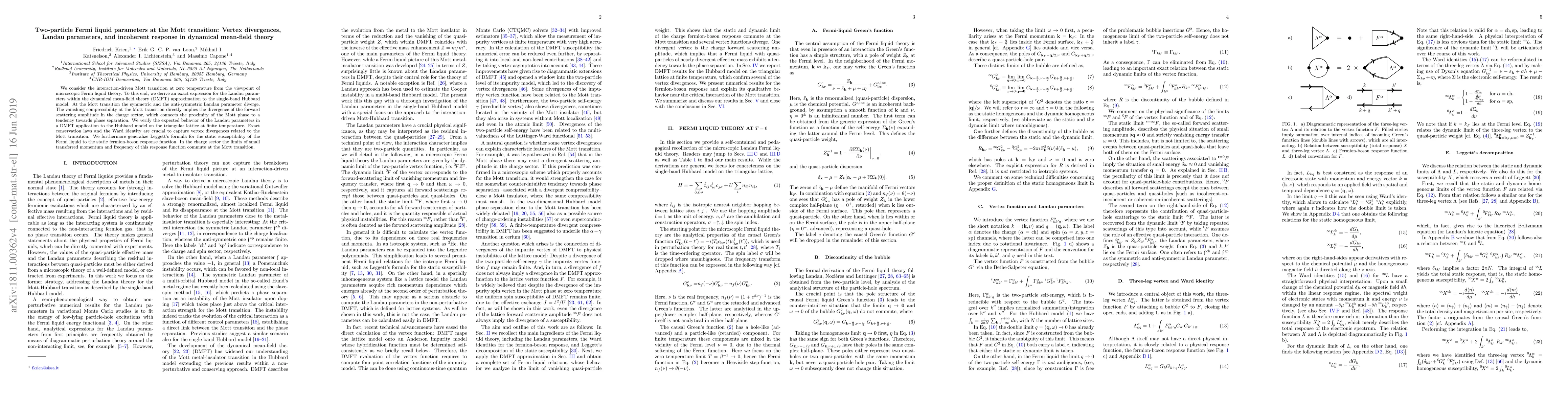 This paper investigates the interaction-driven Mott transition using Fermi liquid theory and DMFT, finding that Landau parameters diverge at the transition, indicating a tendency towards phase separation. The study also verifies these findings in the Hubbard model on the triangular lattice and generalizes Leggett's formula for fermion-boson response.
