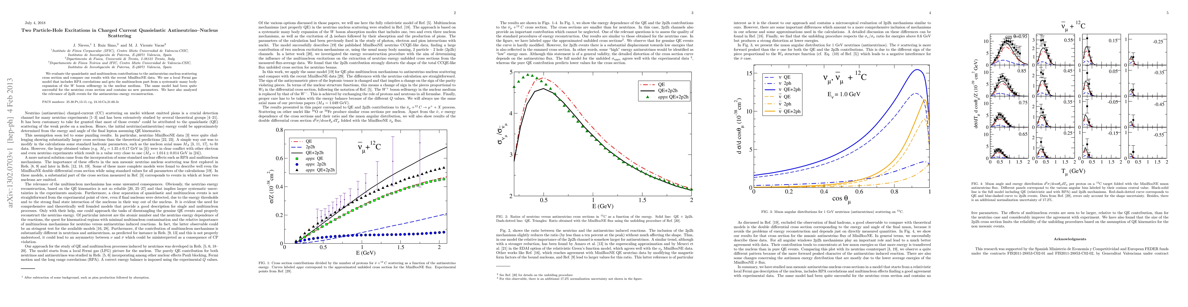 This paper evaluates quasielastic and multinucleon contributions to antineutrino-nucleus scattering, employing a local Fermi gas model with RPA correlations and a many-body expansion for the $W$ boson selfenergy. The results are compared with MiniBooNE data and the study assesses the significance of two particle-hole excitations for antineutrino energy reconstruction.