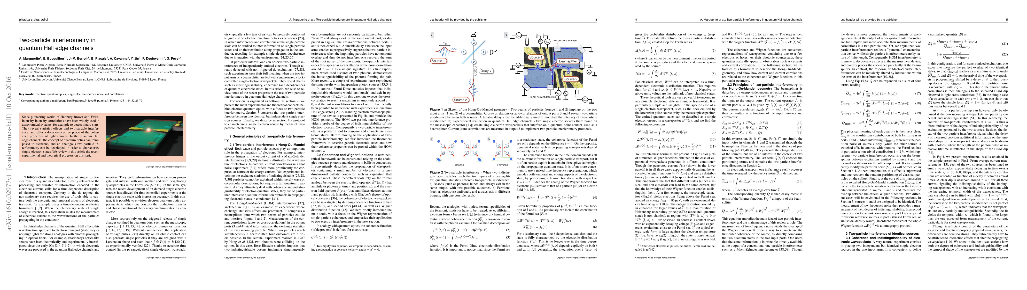 This paper reviews recent advancements in using two-particle interferometry to study quantum Hall edge channels, translating quantum optics concepts to electrons for characterizing single-electron states, highlighting experimental and theoretical progress in this area.