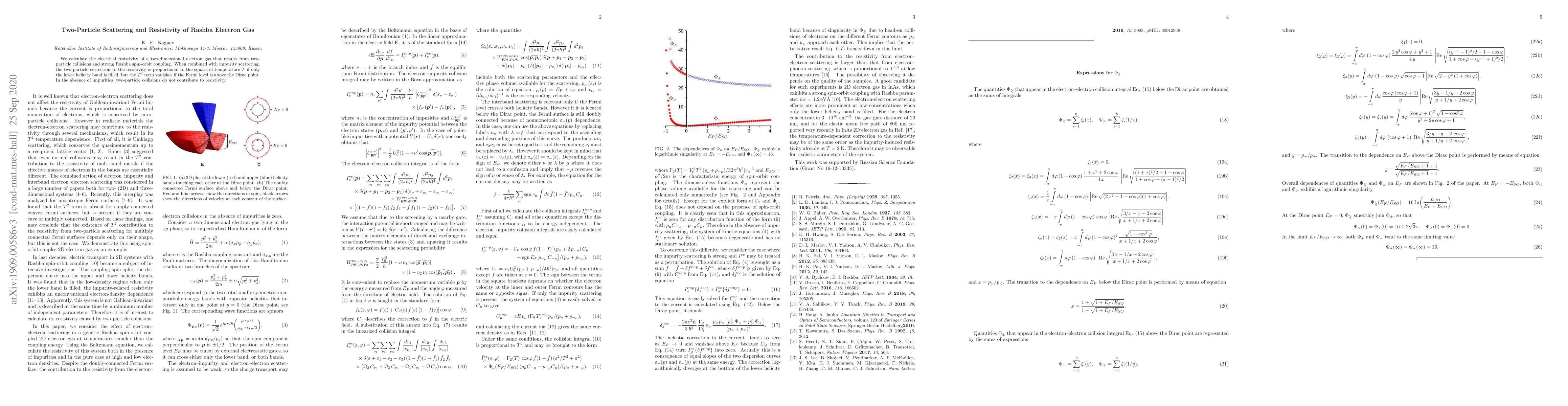This paper investigates the electrical resistivity of two-dimensional electron gas under strong Rashba spin-orbit coupling, finding that two-particle collisions alone do not contribute to resistivity. When impurities are present, two-particle scattering adds a $T^2$ term to resistivity if only the lower helicity band is occupied.