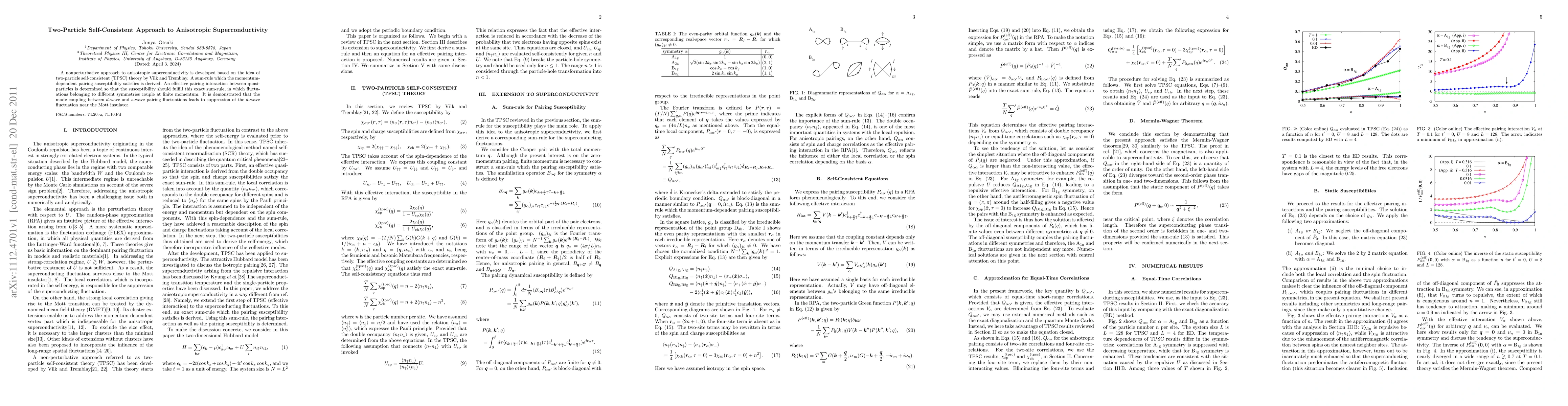 This paper develops a nonperturbative two-particle self-consistent approach to study anisotropic superconductivity, deriving a sum-rule for momentum-dependent pairing susceptibility. It shows that coupling between d-wave and s-wave fluctuations suppresses d-wave pairing near a Mott insulator.