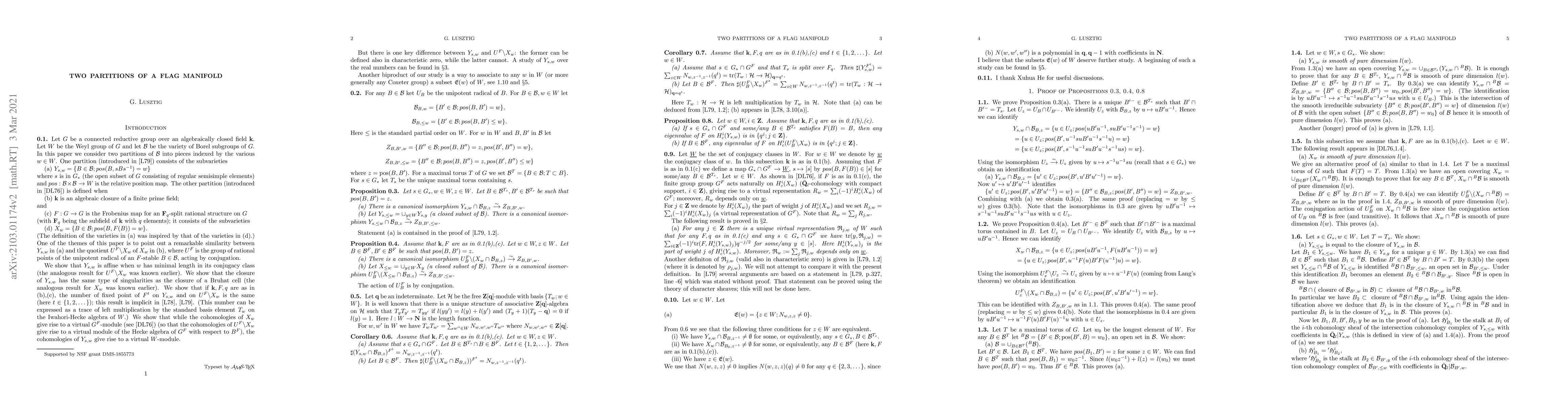 Researchers discovered similarities between two partitions of a flag manifold defined using different group actions, highlighting connections between Frobenius maps and conjugation by regular semisimple elements.