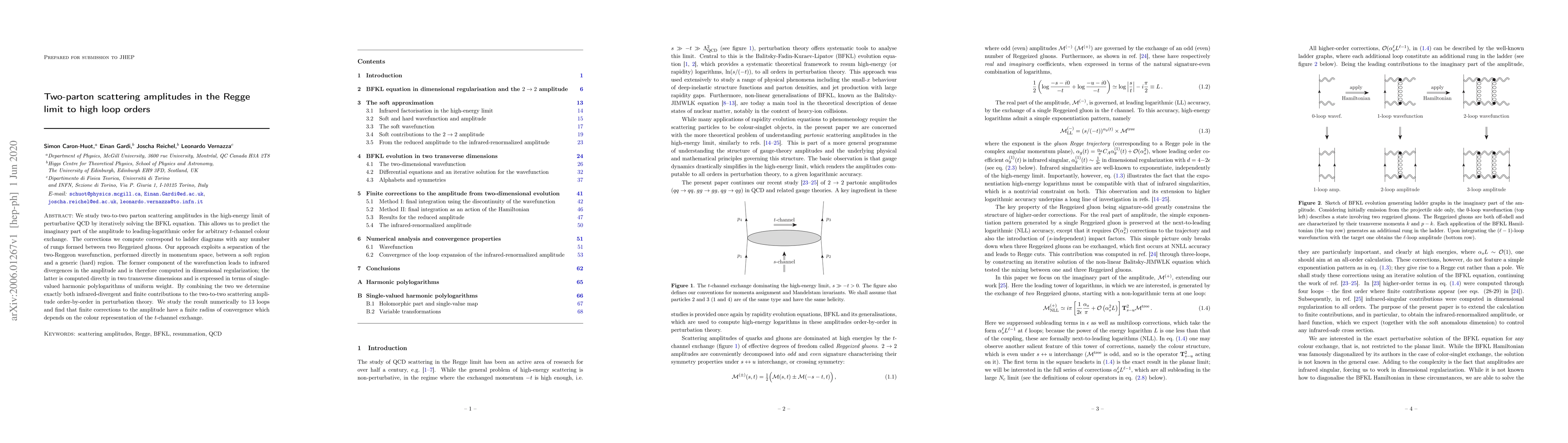 This paper investigates high-loop order two-to-two parton scattering amplitudes in perturbative QCD using the BFKL equation, predicting the imaginary part of the amplitude to leading-logarithmic order. It separates the wavefunction into soft and hard regions, combining dimensional regularization for divergences and harmonic polylogarithms for finite contributions, and numerically analyzes the results up to 13 loops.