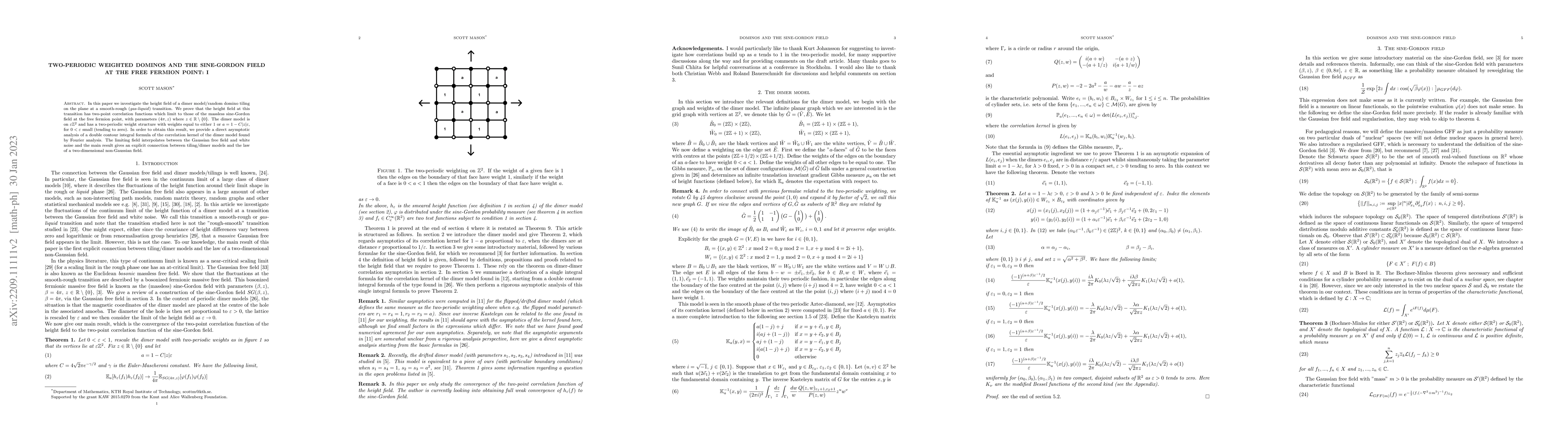 This paper explores the height field of a dimer model at a smooth-rough transition, proving its two-point correlation functions converge to those of the massless sine-Gordon field at the free fermion point. The dimer model features a two-periodic weight structure and an asymptotic analysis of its correlation kernel establishes a connection between tiling models and a non-Gaussian field.