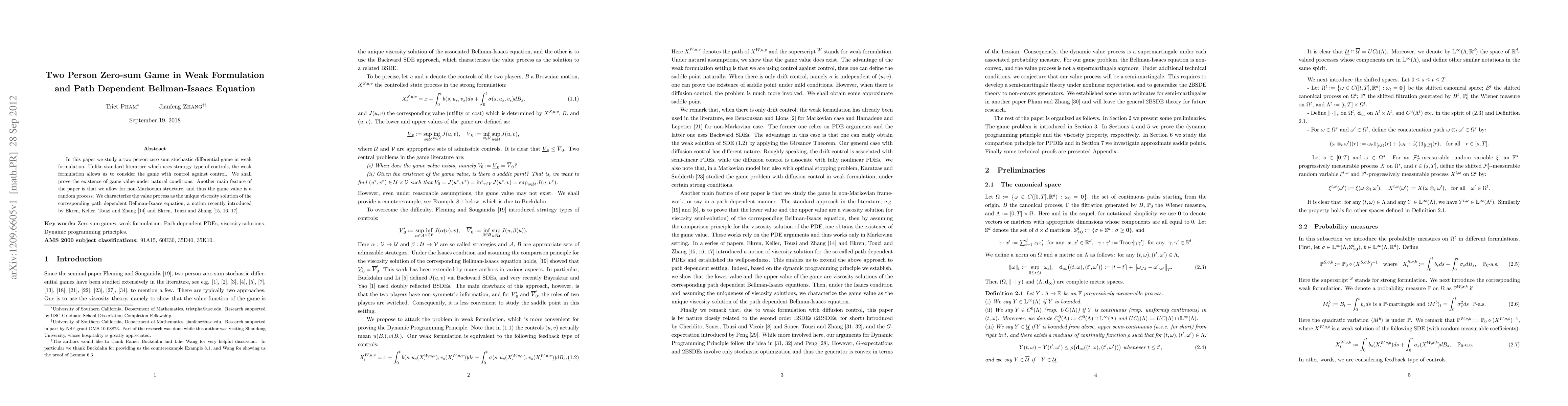This paper investigates a two-person zero-sum stochastic differential game in weak formulation, focusing on controls against controls rather than strategy types. It proves the existence of a game value under natural conditions and characterizes the value process as the unique viscosity solution to a path-dependent Bellman-Isaacs equation, allowing for non-Markovian structures.