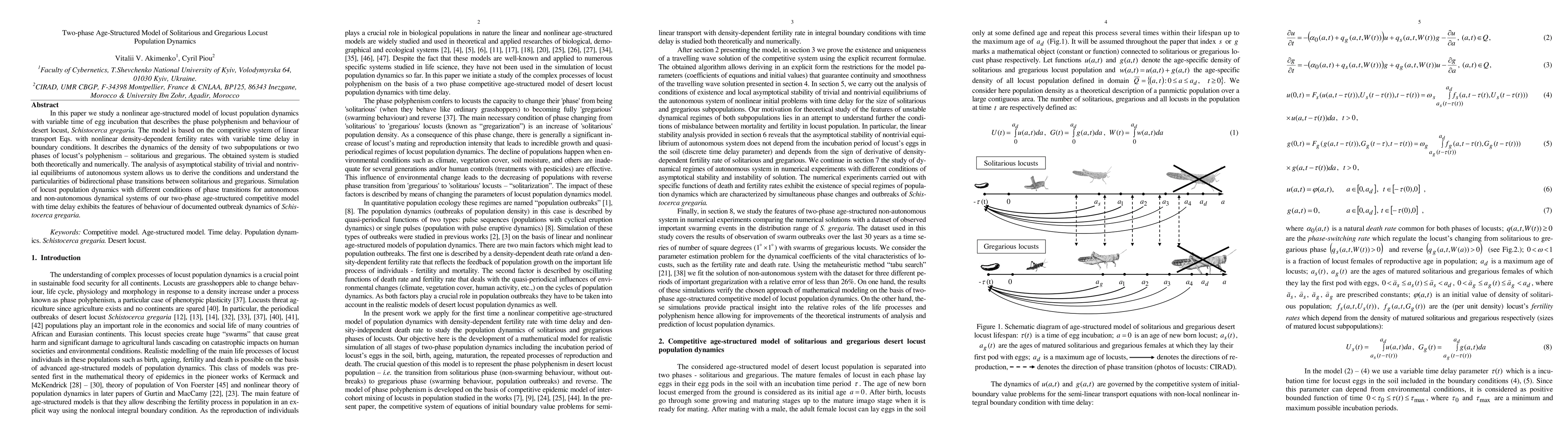 This paper develops a nonlinear age-structured model to analyze the population dynamics of desert locusts, focusing on the phase polyphenism and transitions between solitarious and gregarious behaviors. The study reveals the conditions for stability and bidirectional phase transitions through simulations that match documented outbreak behaviors of Schistocerca gregaria.