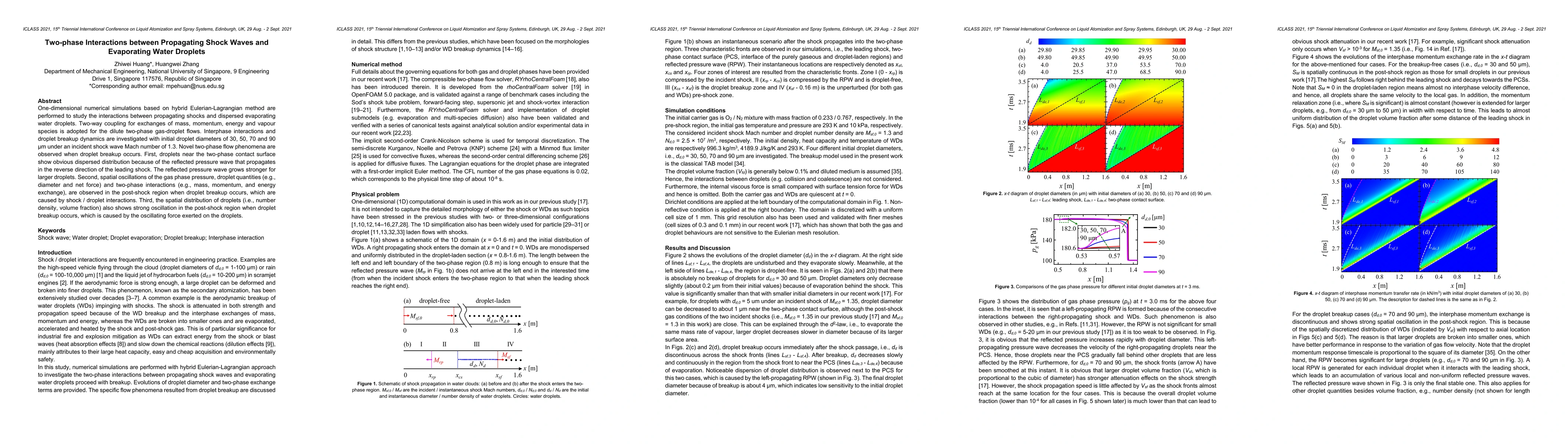 Numerical simulations reveal new two-phase flow phenomena when propagating shock waves interact with evaporating water droplets, including droplet breakup-induced oscillations in gas phase pressure and spatial distribution of droplets.