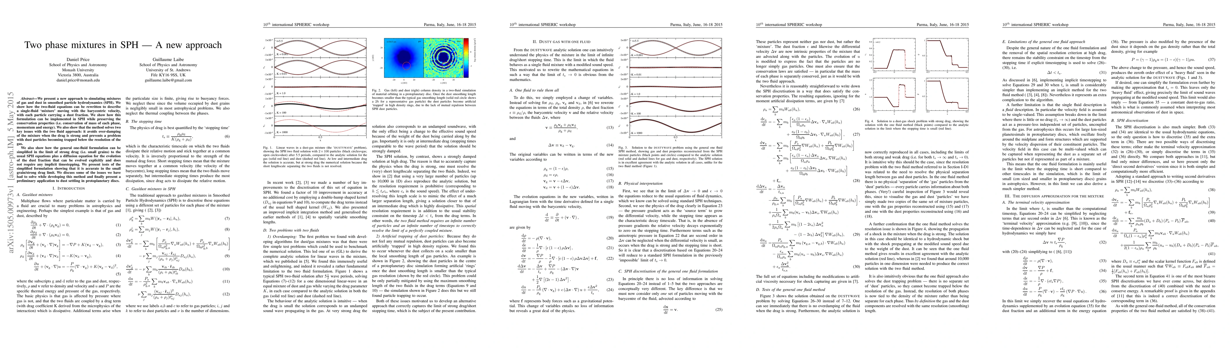 We present a new approach to simulating mixtures of gas and dust in smoothed particle hydrodynamics (SPH). We show how the two-fluid equations can be rewritten to describe a single-fluid 'mixture' moving with the barycentric velocity, with each particle carrying a dust fraction. We show how this formulation can be implemented in SPH while preserving the conservation properties (i.e. conservation of mass of each phase, momentum and energy). We also show that the method solves two key issues with the two fluid approach: it avoids over-damping of the mixture when the drag is strong and prevents a problem with dust particles becoming trapped below the resolution of the gas. We also show how the general one-fluid formulation can be simplified in the limit of strong drag (i.e. small grains) to the usual SPH equations plus a diffusion equation for the evolution of the dust fraction that can be evolved explicitly and does not require any implicit timestepping. We present tests of the simplified formulation showing that it is accurate in the small grain/strong drag limit. We discuss some of the issues we have had to solve while developing this method and finally present a preliminary application to dust settling in protoplanetary discs.