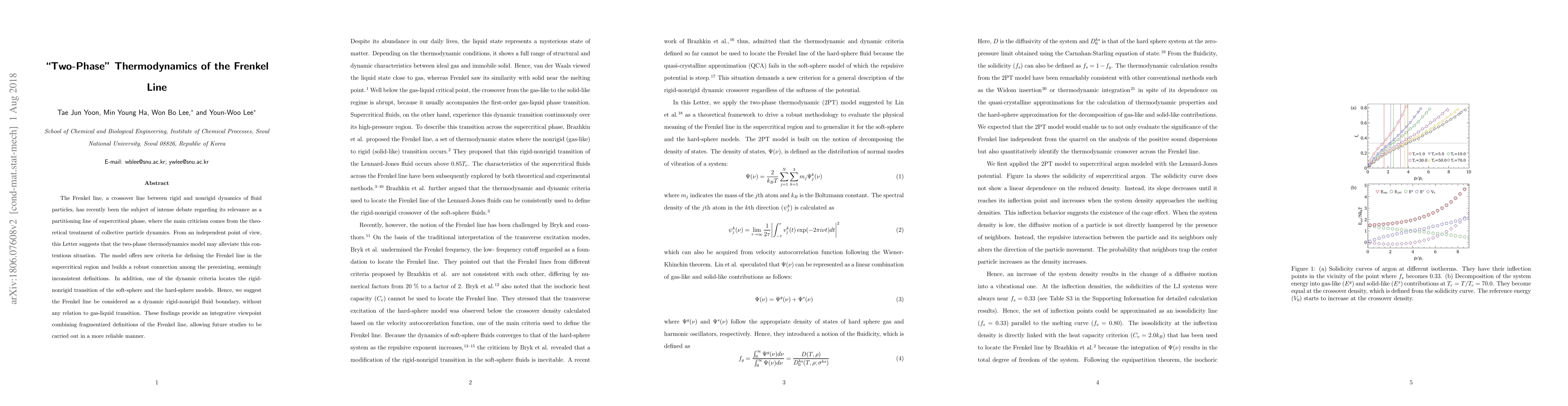 The Frenkel line, a crossover line between rigid and nonrigid dynamics of fluid particles, has recently been the subject of intense debate regarding its relevance as a partitioning line of supercritical phase, where the main criticism comes from the theoretical treatment of collective particle dynamics. From an independent point of view, this Letter suggests that the two-phase thermodynamics model may alleviate this contentious situation. The model offers new criteria for defining the Frenkel line in the supercritical region and builds a robust connection among the preexisting, seemingly inconsistent definitions. In addition, one of the dynamic criteria locates the rigid-nonrigid transition of the soft-sphere and the hard-sphere models. Hence, we suggest the Frenkel line be considered as a dynamic rigid-nonrigid fluid boundary, without any relation to gas-liquid transition. These findings provide an integrative viewpoint combining fragmentized definitions of the Frenkel line, allowing future studies to be carried out in a more reliable manner.