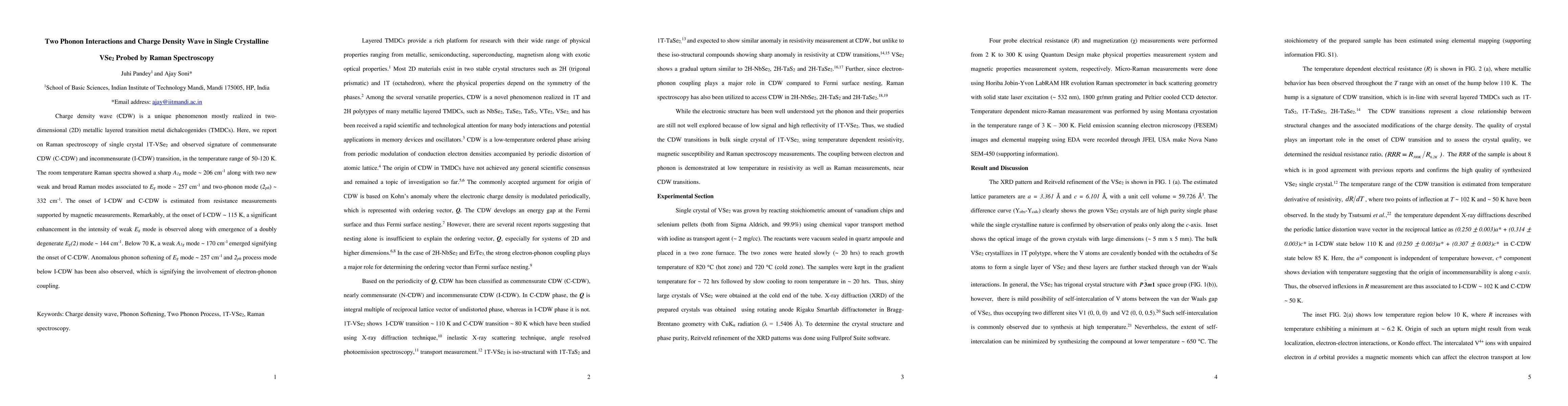 Charge density wave (CDW) is a unique phenomenon mostly realized in two-dimensional (2D) metallic layered transition metal dichalcogenides (TMDCs). Here, we report on Raman spectroscopy of single crystal 1T-VSe2 and observed signature of commensurate CDW (C-CDW) and incommensurate (I-CDW) transition, in the temperature range of 50-120 K. The room temperature Raman spectra showed a sharp A1g mode ~ 206 cm-1 along with two new weak and broad Raman modes associated to Eg mode ~ 257 cm-1 and two-phonon mode (2ph) ~ 332 cm-1. The onset of I-CDW and C-CDW is estimated from resistance measurements supported by magnetic measurements. Remarkably, at the onset of I-CDW ~ 115 K, a significant enhancement in the intensity of weak Eg mode is observed along with emergence of a doubly degenerate Eg(2) mode ~ 144 cm-1. Below 70 K, a weak A1g mode ~ 170 cm-1 emerged signifying the onset of C-CDW. Anomalous phonon softening of Eg mode ~ 257 cm-1 and 2ph process mode below I-CDW has been also observed, which is signifying the involvement of electron-phonon coupling.