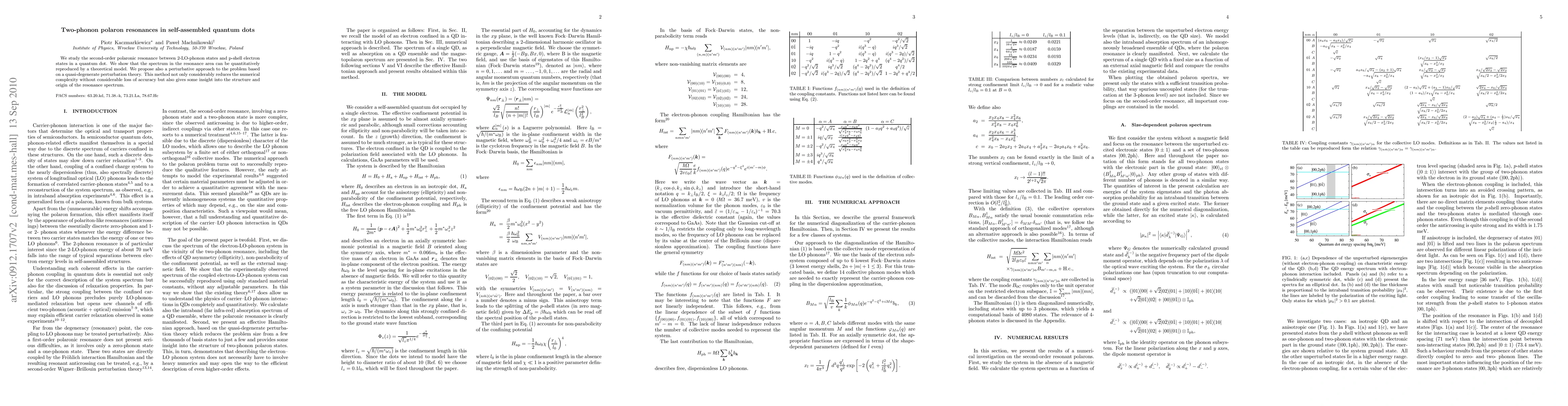 We study the second-order polaronic resonance between 2-LO-phonon states and p-shell electron states in a quantum dot. We show that the spectrum in the resonance area can be quantitatively reproduced by a theoretical model using only standard material constants, without any free parameters. We propose also a perturbative approach to the problem based on a quasi-degenerate perturbation theory. This method not only considerably reduces the numerical complexity without considerable loss of accuracy but also gives some insight into the structure and origin of the resonance spectrum.