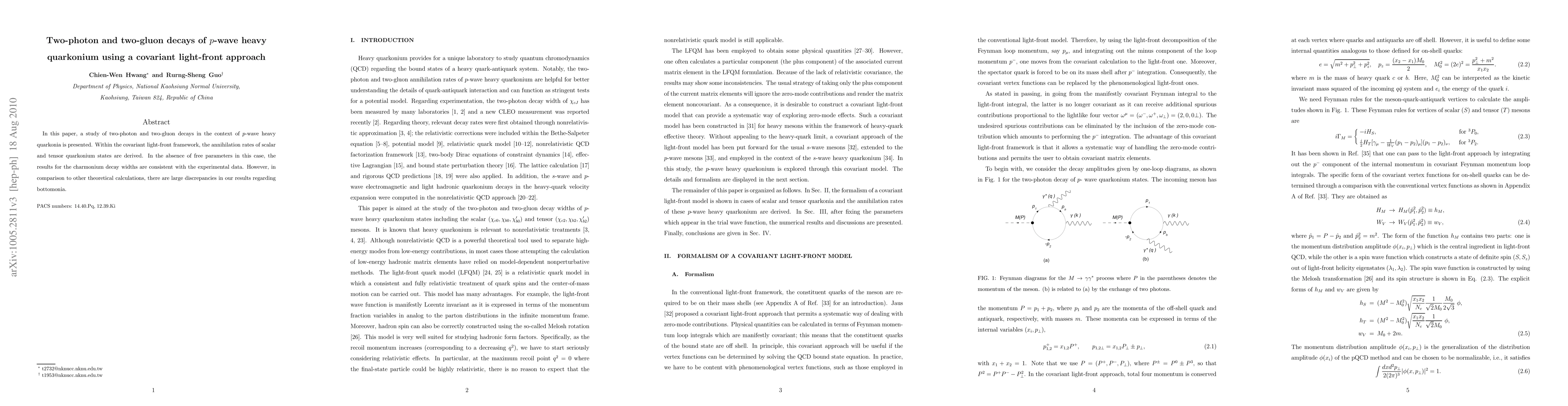 This paper explores two-photon and two-gluon decays of p-wave heavy quarkonium using a covariant light-front approach, deriving annihilation rates for charmonium and bottomonium states. While charmonium decay widths align with experimental data, discrepancies arise in bottomonium results compared to other theoretical calculations.