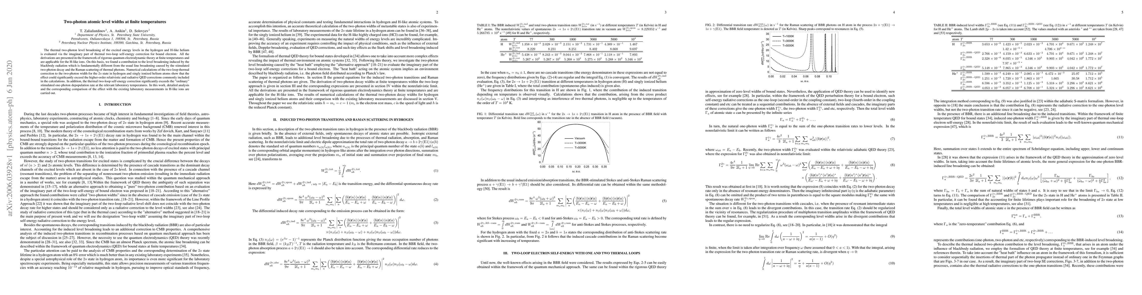 This paper evaluates the thermal two-photon level broadening in hydrogen and H-like helium via quantum electrodynamic theory at finite temperatures, finding significant contributions from blackbody radiation. The thermal two-loop self-energy correction is shown to exceed higher-order relativistic and radiative QED corrections and the usual stimulated one-photon decay rate.