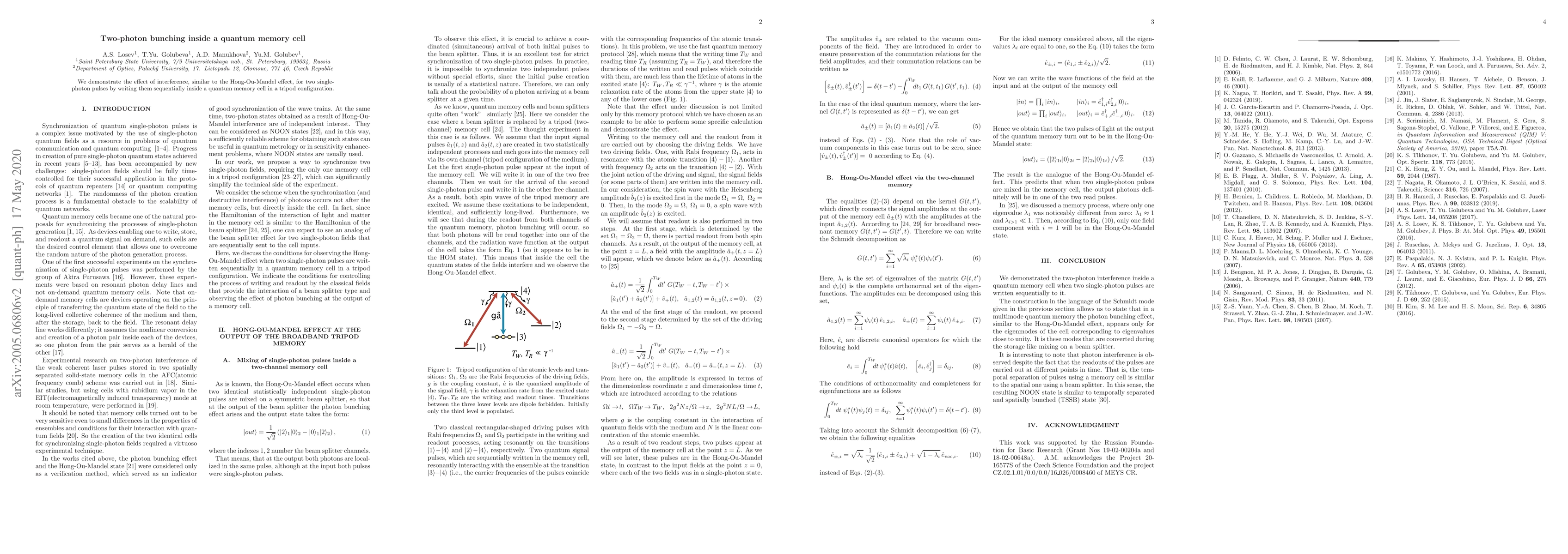 Researchers demonstrated a two-photon bunching effect inside a quantum memory cell, similar to the Hong-Ou-Mandel effect, by writing sequential single-photon pulses into a tripod configuration.