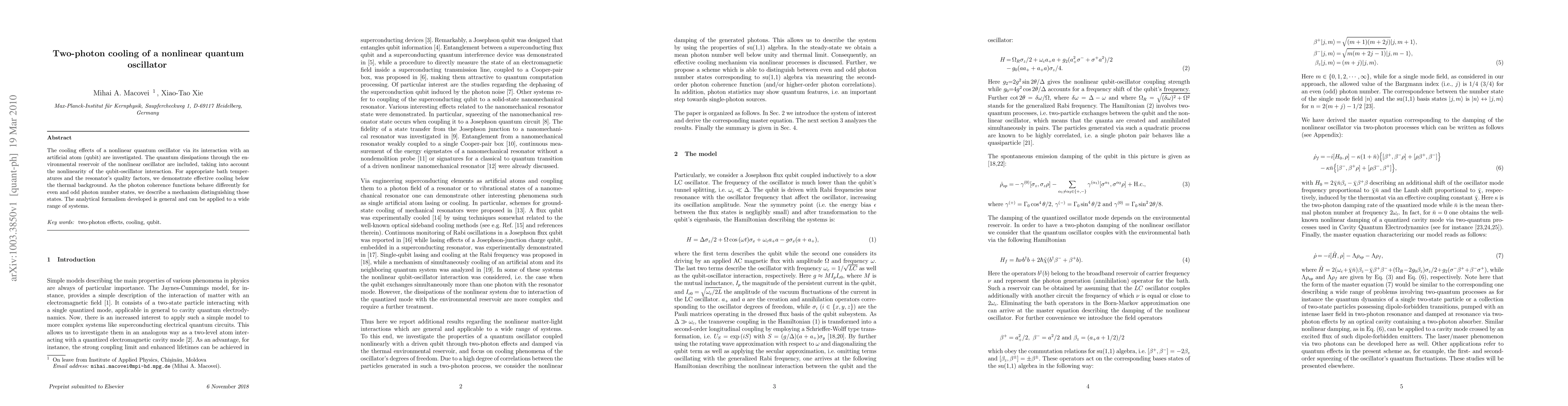 Researchers demonstrate effective cooling of a nonlinear quantum oscillator using an artificial atom, achieving temperatures below thermal background, and providing a general analytical framework for various systems.