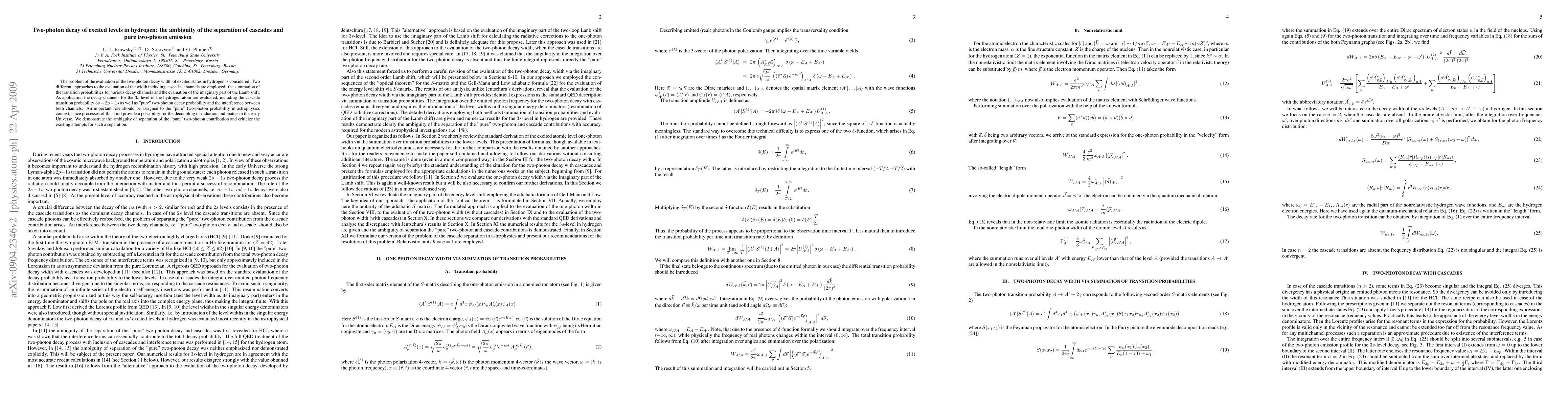 The problem of the evaluation of the two-photon decay width of excited states in hydrogen is considered. Two different approaches to the evaluation of the width including cascades channels are employed: the summation of the transition probabilities for various decay channels and the evaluation of the imaginary part of the Lamb shift. As application the decay channels for the 3s level of the hydrogen atom are evaluated, including the cascade transition probability 3s-2p-1s as well as "pure" two-photon decay probability and the interference between both channels. An important role should be assigned to the "pure" two-photon probability in astrophysics context, since processes of this kind provide a possibility for the decoupling of radiation and matter in the early Universe. We demonstrate the ambiguity of separation of the "pure" two-photon contribution and criticize the existing attempts for such a separation.