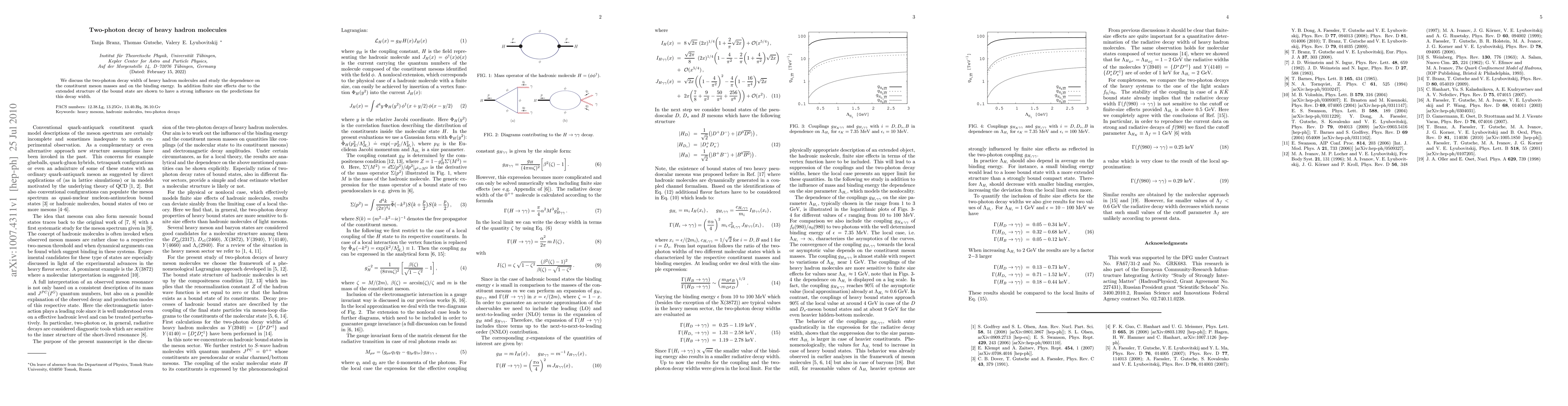 We discuss the two-photon decay width of heavy hadron molecules and study the dependence on the constituent meson masses and on the binding energy. In addition finite size effects due to the extended structure of the bound state are shown to have a strong influence on the predictions for this decay width.
