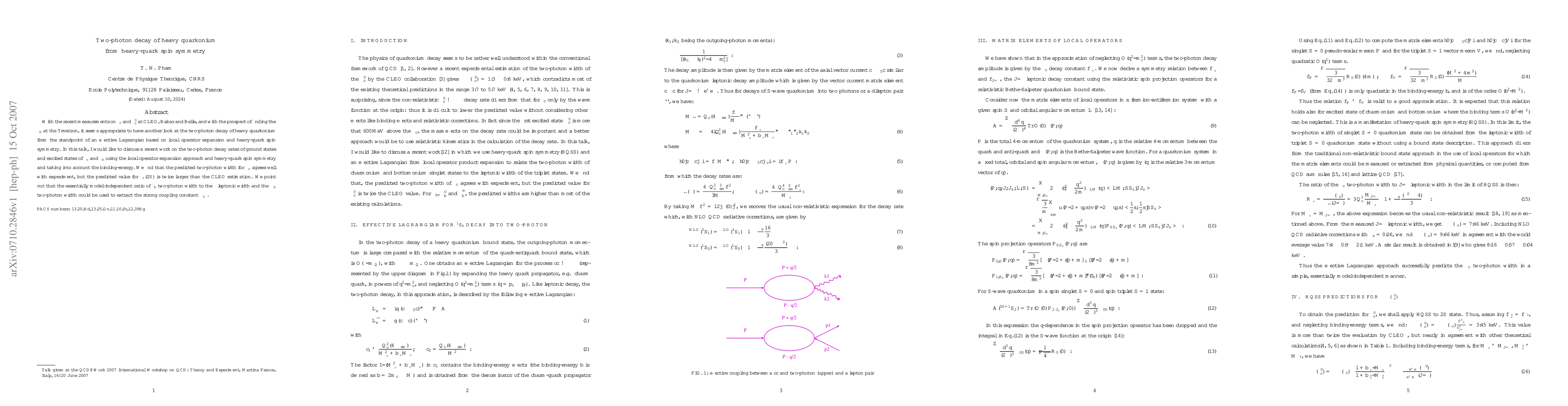 With the recent measurements on $\eta_{c}$ and $\eta_{c}^{\prime}$ at CLEO, Babar and Belle, and with the prospect of finding the $\eta_{b}$ at the Tevatron, it seems appropriate to have another look at the two-photon decay of heavy quarkonium from the standpoint of an effective Lagrangian based on local operator expansion and heavy-quark spin symmetry. In this talk, I would like to discuss a recent work on the two-photon decay rates of ground states and excited states of $\eta_c$ and $\eta_b$ using the local operator expansion approach and heavy-quark spin symmetry and taking into account the binding-energy. We find that the predicted two-photon width for $\eta_c$ agrees well with experiment, but the predicted value for $\eta_c(2S)$ is twice larger than the CLEO estimation. We point out that the essentially model-independent ratio of $\eta_b$ two-photon width to the $\Upsilon$ leptonic width and the $\eta_b $ two-photon width could be used to extract the strong coupling constant $\alpha_s$ .