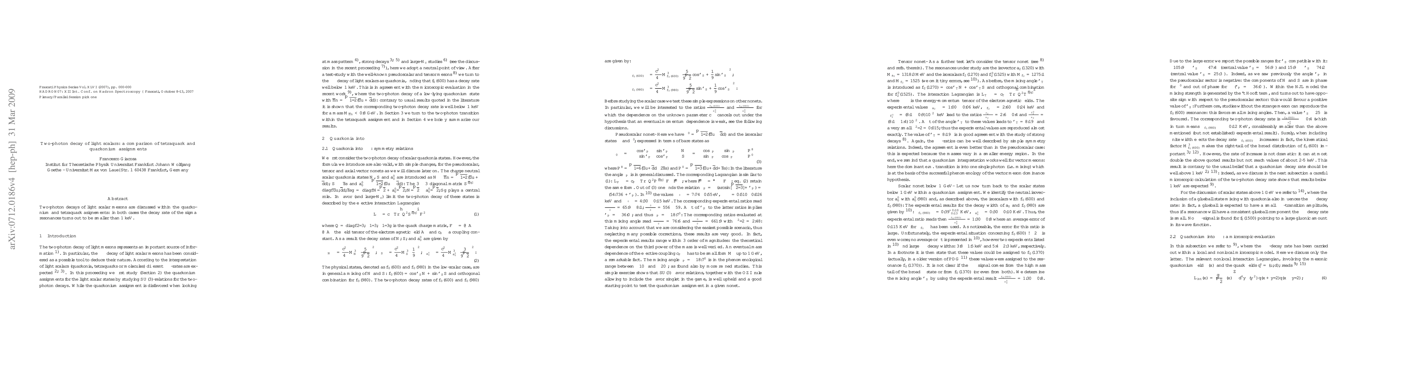 Research compares two-photon decay rates of light scalar mesons in both quarkonium and tetraquark assignments, finding that sigma resonances have decay rates smaller than 1 keV.