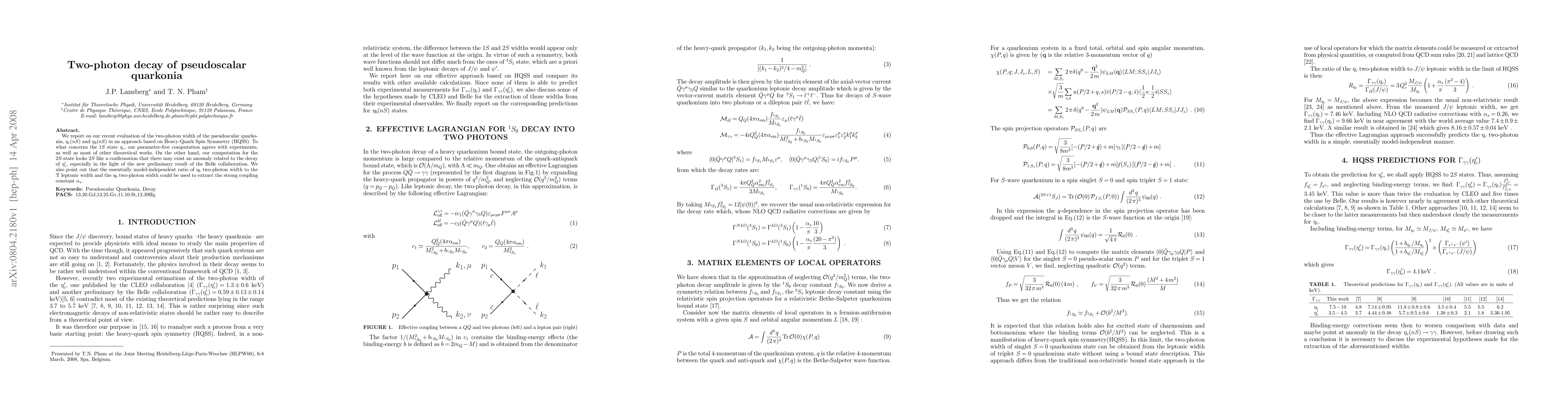 We report on our recent evaluation of the two-photon width of the pseudoscalar quarkonia, eta_c(nS) and eta_b(nS) in an approach based on Heavy-Quark Spin Symmetry (HQSS). To what concerns the 1S state eta_c, our parameter-free computation agrees with experiments, as well as most of other theoretical works. On the other hand, our computation for the 2S-state looks 2S like a confirmation that there may exist an anomaly related to the decay of eta_c(2S), especially in the light of the new preliminary result of the Belle collaboration. We also point out that the essentially model-independent ratio of eta_b two-photon width to the Upsilon leptonic width and the eta_b two-photon width could be used to extract the strong coupling constant alpha_s.