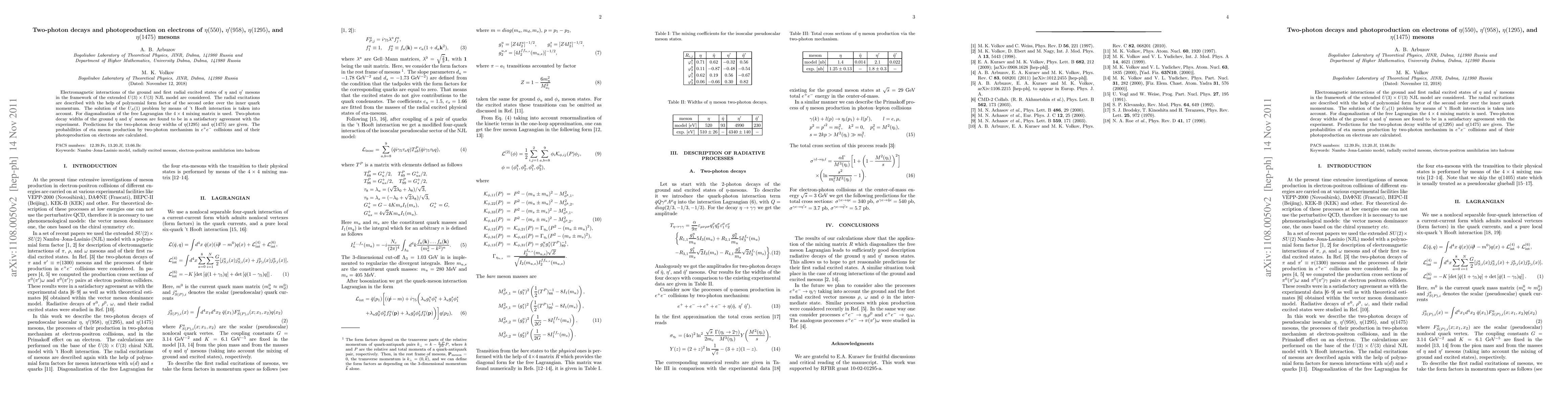 This research paper calculates two-photon decay widths for different types of eta mesons and predicts their probabilities in e+e- collisions and electron photoproduction.