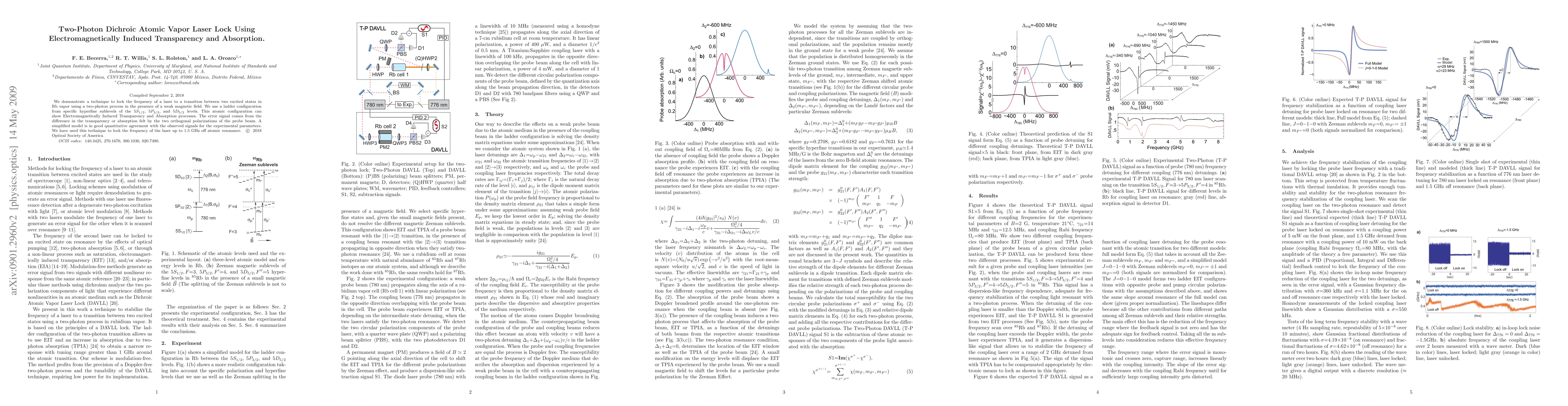 We demonstrate a technique to lock the frequency of a laser to a transition between two excited states in Rb vapor in the presence of a weak magnetic field. We use a ladder configuration from specific hyperfine sublevels of the 5S 1/2, 5P 3/2, and 5D 5/2 levels. This atomic configuration can show Electromagnetically Induced Transparency and Absorption processes. The error signal comes from the difference in the transparency or absorption felt by the two orthogonal polarizations of the probe beam. A simplified model is in good quantitative agreement with the observed signals for the experimental parameters. We have used this technique to lock the frequency of the laser up to 1.5 GHz off atomic resonance.