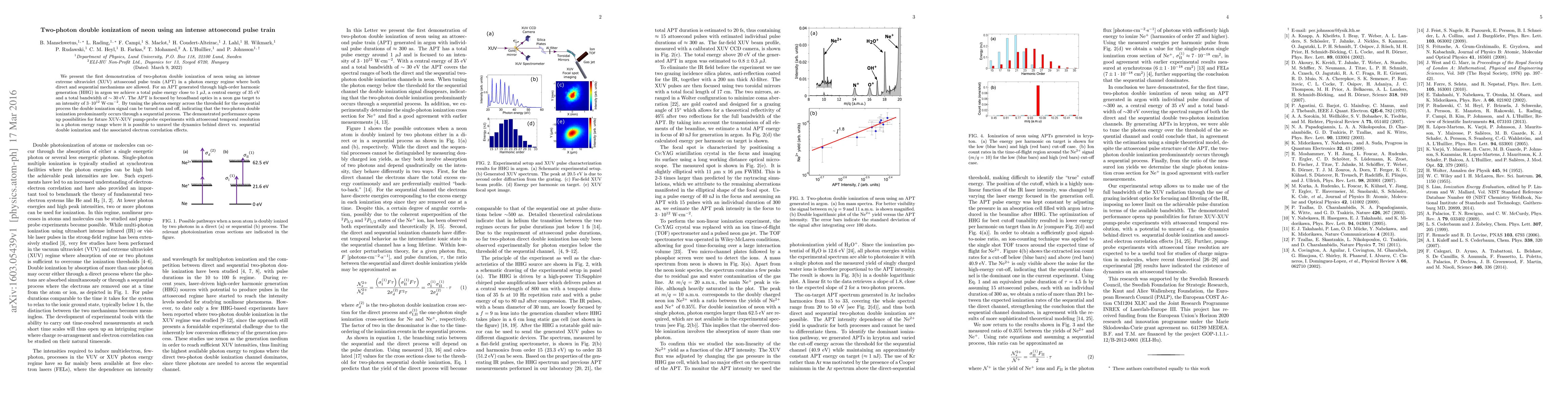 This study demonstrates the first two-photon double ionization of neon using an intense attosecond pulse train in the extreme ultraviolet, showing that the process predominantly occurs via a sequential mechanism. The experiment uses high-order harmonic generation to achieve an attosecond pulse train with a central energy of 35 eV and an intensity of $3\cdot10^{12}$ W$\cdot$cm$^{-2}$, paving the way for future attosecond pump-probe experiments.
